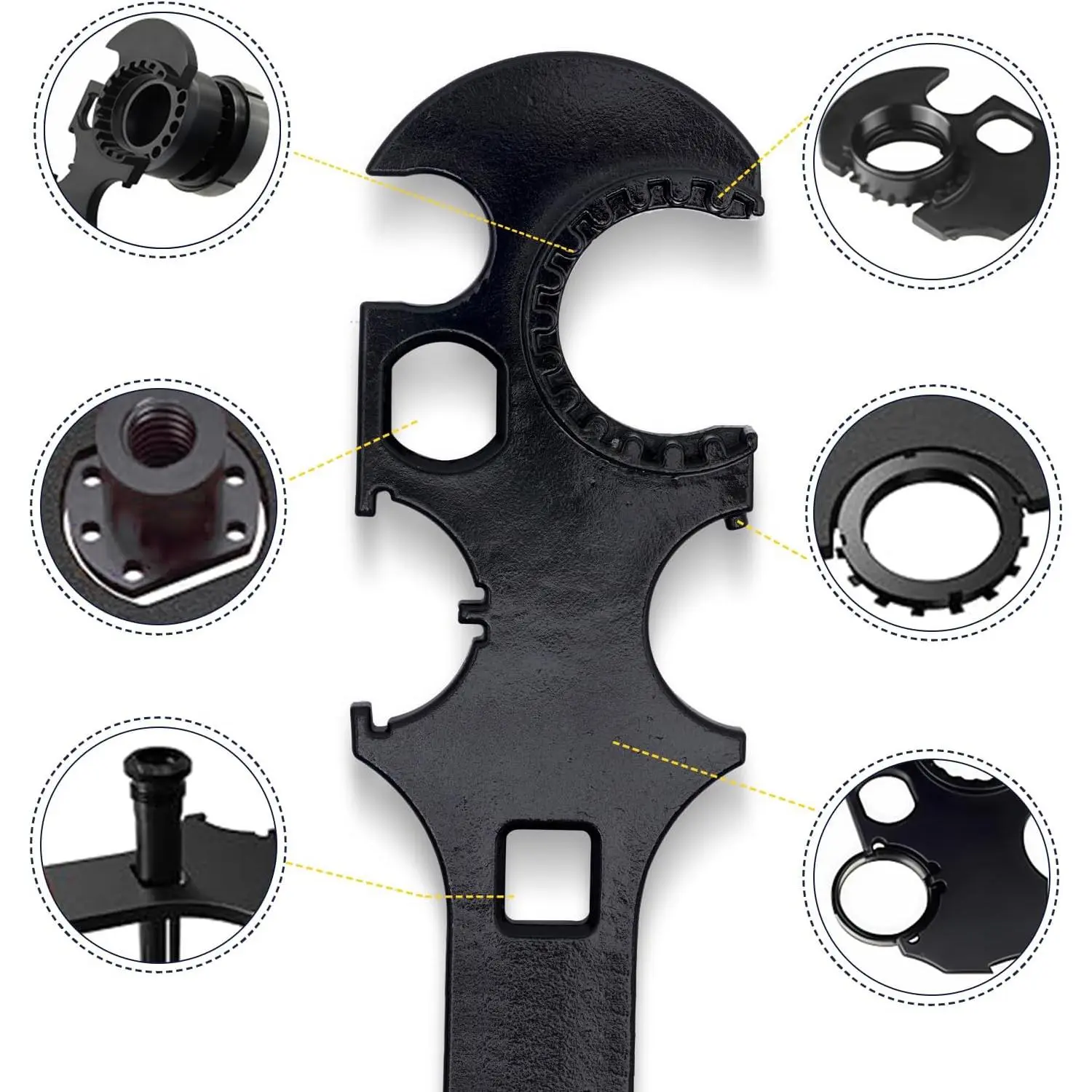 [Alloy steel material]This multifunctional lock spanner wrench is made of high quality alloy steel, the anti-corrosion black oxide coating, weighs only 16 ounces, and offers high hardness and abrasion resistance.[Multi-Function Wrench]This Wrench can be matched with castle nuts, as well as with ring nuts and buffer tube nuts.Can meet various maintenance needs.[Optimized]This wrench is precision engineered to drive wrench head screws, threaded rings and shafts.Its precise fit minimizes the risk of damage to shafts, nuts and housings.[Efficient Operation]This nut wrench ensures a comfortable grip and optimal force transfer.[ Widely Used ] Wrenches are widely used in car and bicycle repairs, as well as home and mechanical equipment repairs. They are suitable for disassembling and installing various components and are very suitable for DIY projects and home repairs