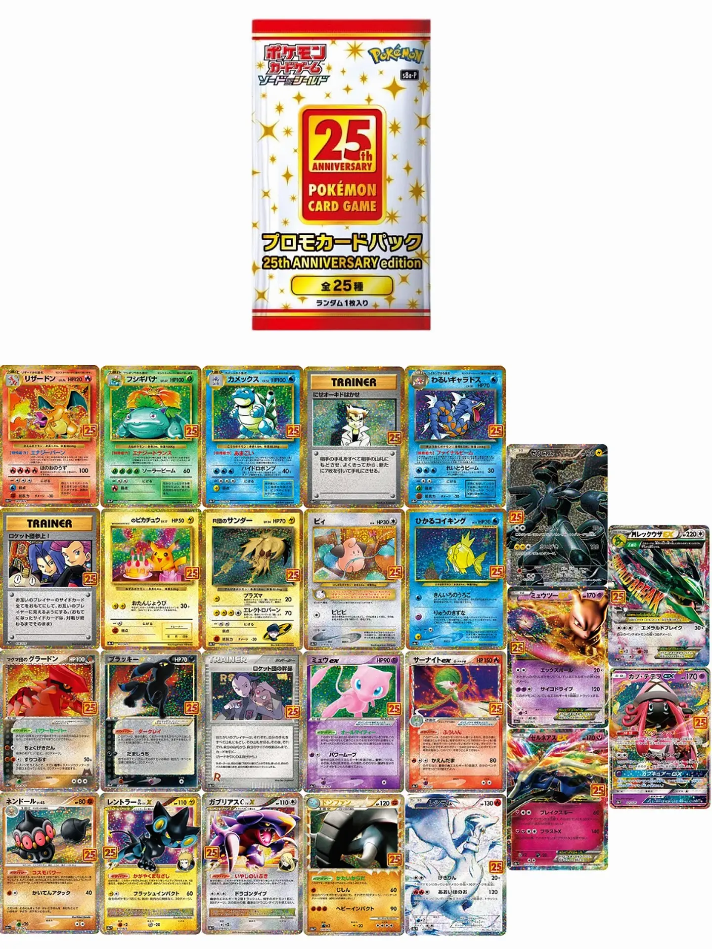 ·4 x 25th Anniversary Collection Booster Packs (S8a): Each pack contains 5 cards, all of which are shiny Holofoil!