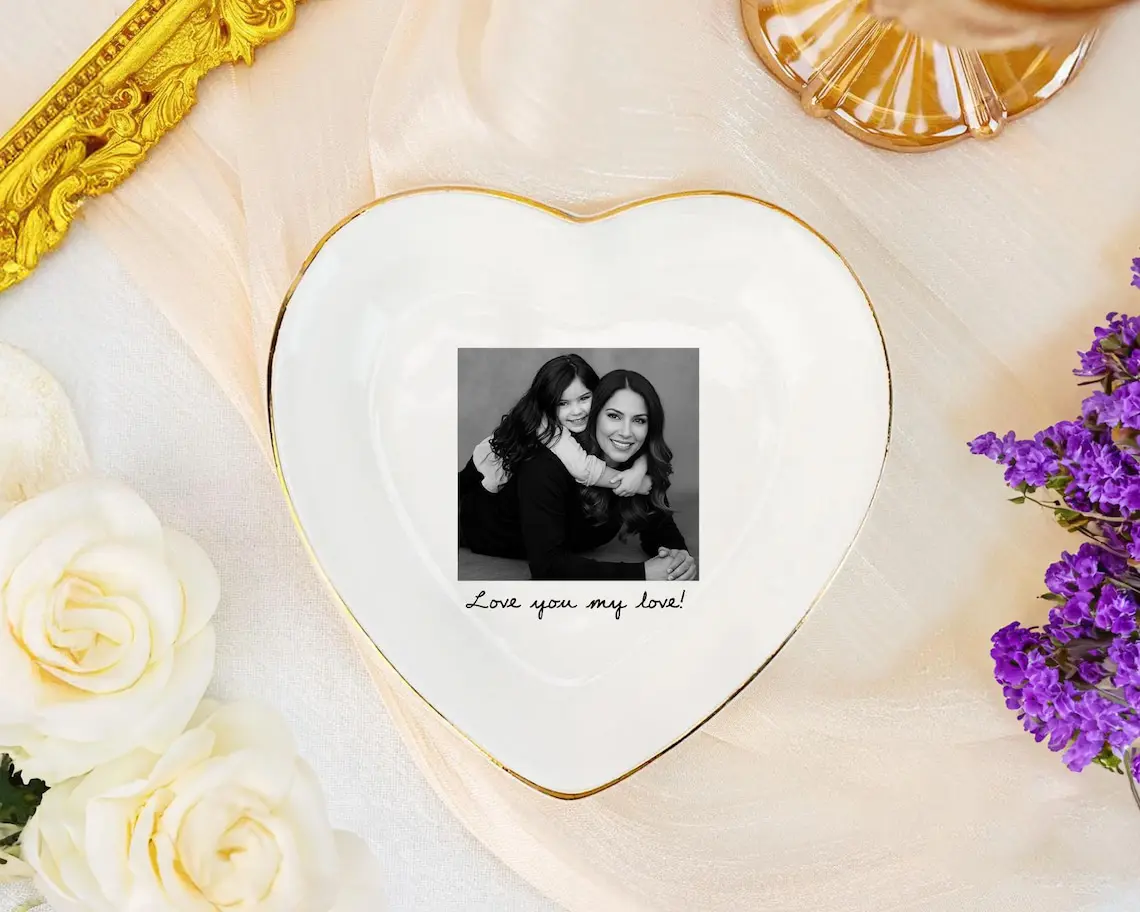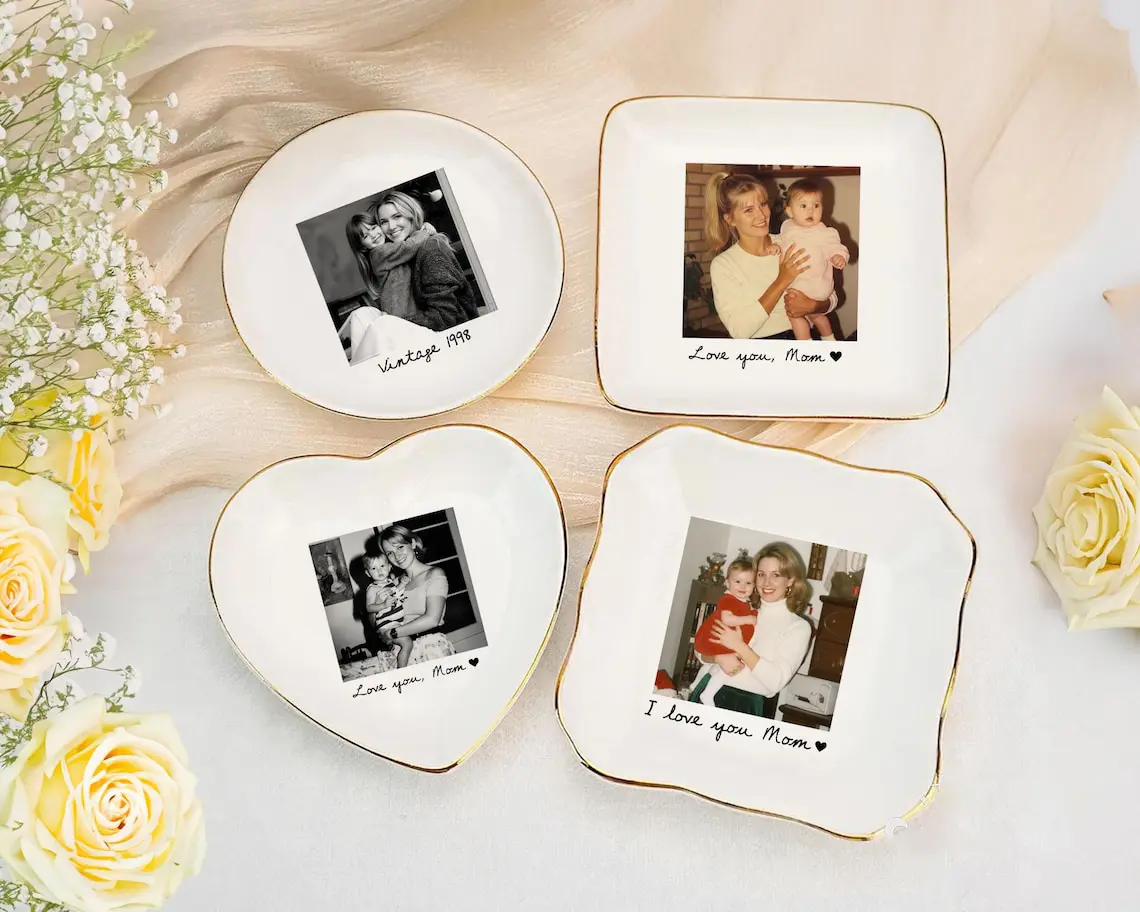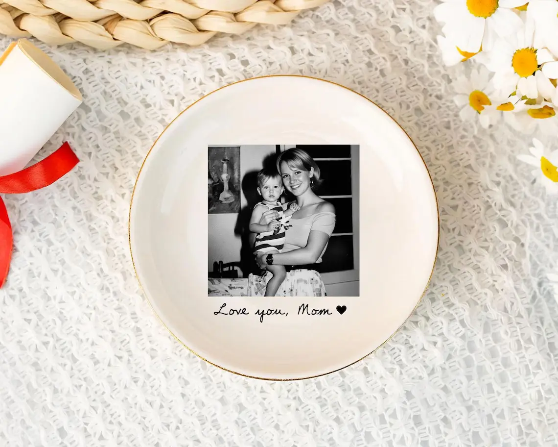 Personalized Mom Photo Jewelry Dish: Ceramic Trinket Tray Gift for Mom, Thank You Grandma, Birthday Ring Dish Gift, Mom Gift from Daughter, Mother's Day Gifts