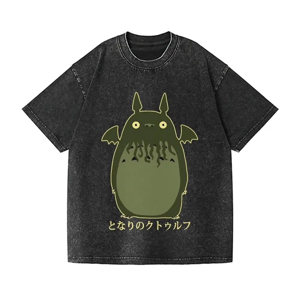 5. My Neighbor Totoro Cthulhu Hybrid Washed Graphic Streetwear T-Shirt