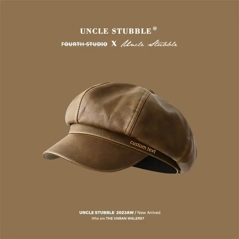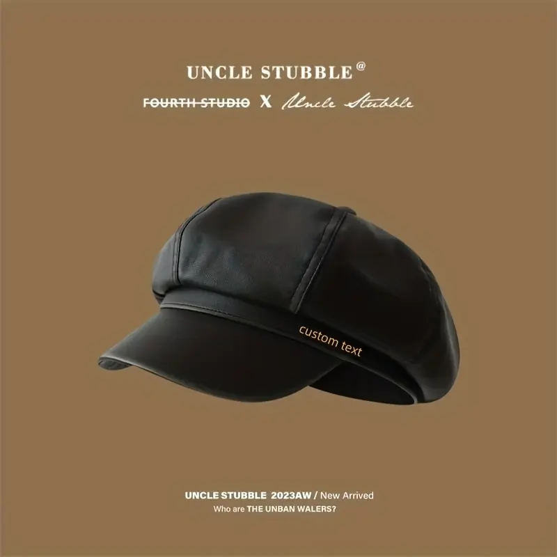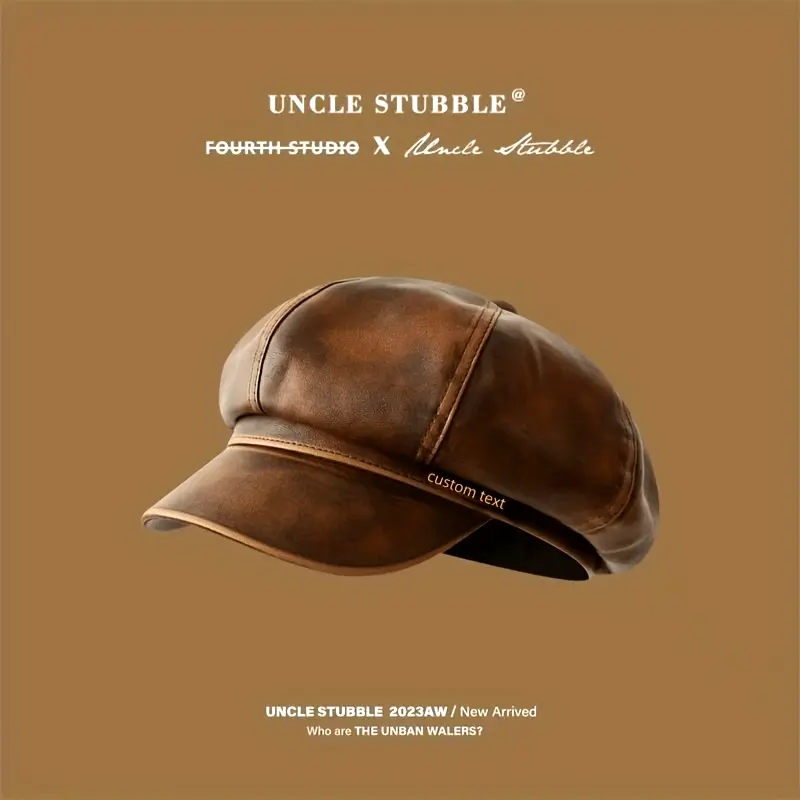 Customizable Vintage British Style Faux Leather Newsboy Cap - Lightweight, Washed Finish, Versatile Octagonal Hat for Men & Women, Perfect for Casual or Formal Occasions, Casual Headwear | Vintage Style Cap | Durable Headgear