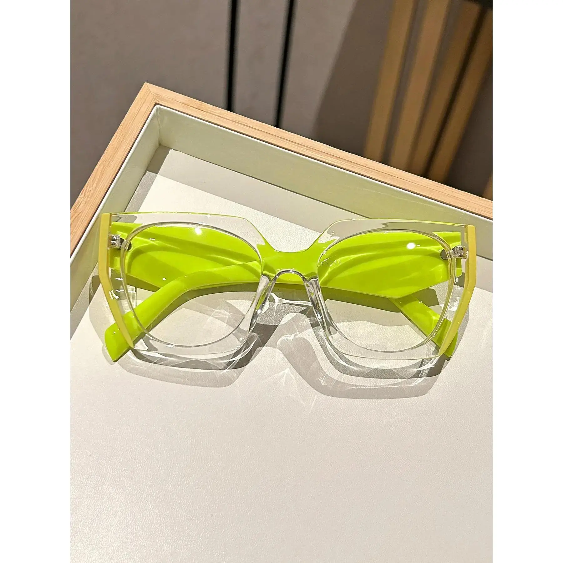 Fashion Metal Square Frame Flat Light Lens Outdoor Versatile Anti-Blue Light Stylish Protective Glasses, Casual Style, All Seasons, Solid Color Design