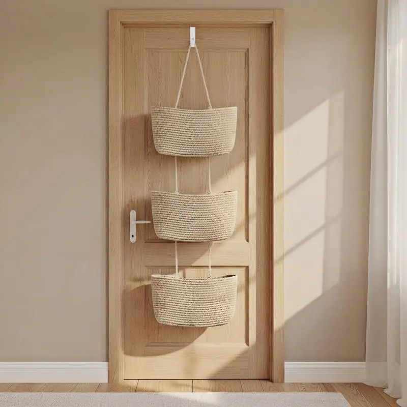 Elevate your home storage with this woven cotton wall-mounted organizer. Perfect for nurseries, diapers, toys, and more. This 3-tier basket offers ample space for organizing essentials. Hang it over any door for easy access. Ideal for keeping your home tidy and clutter-free.