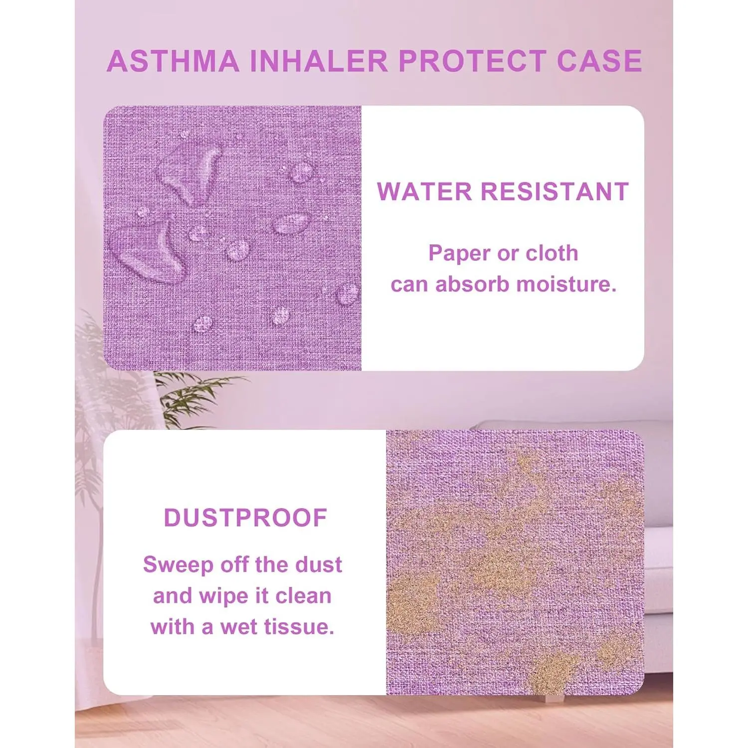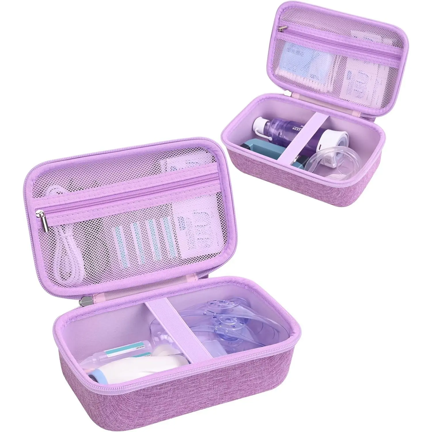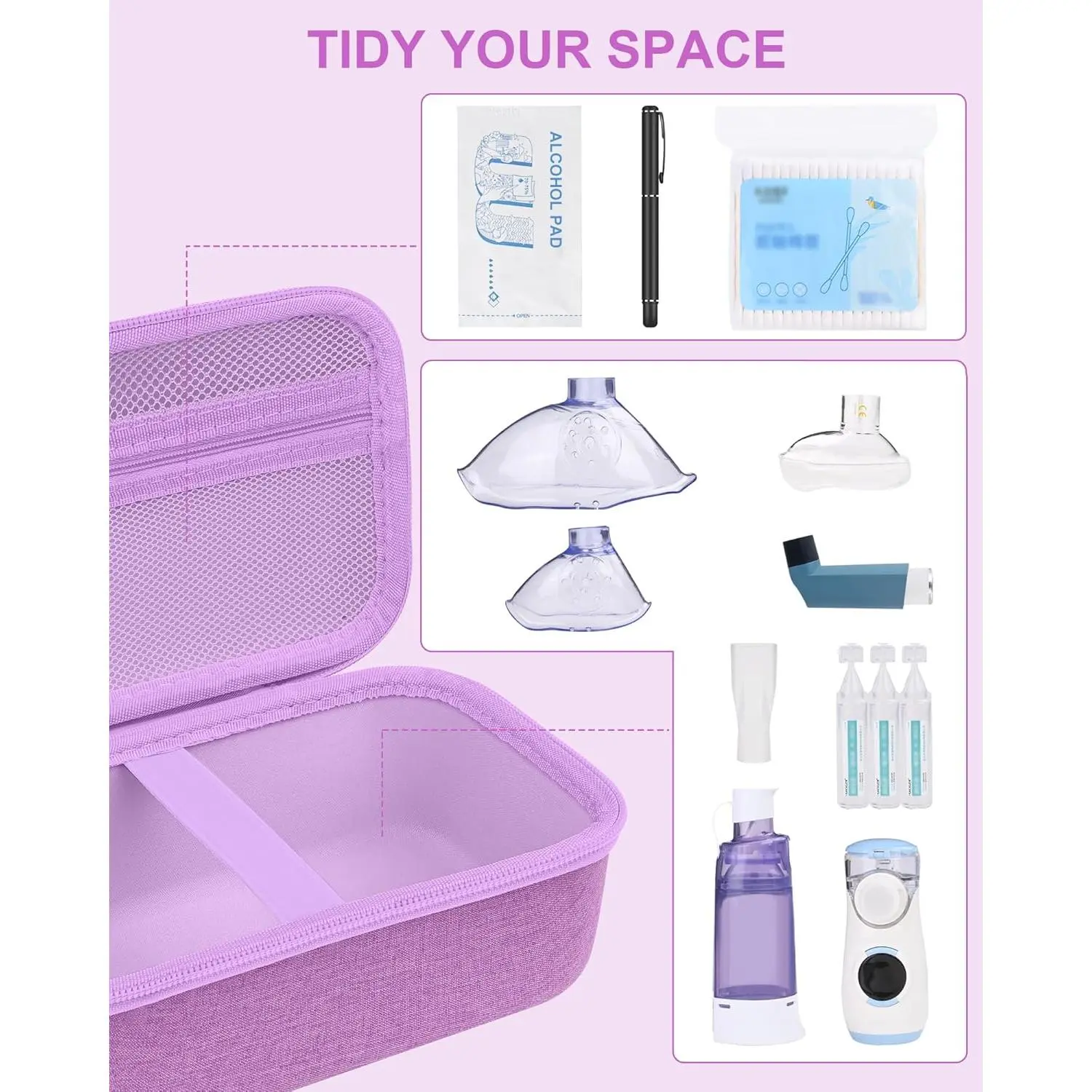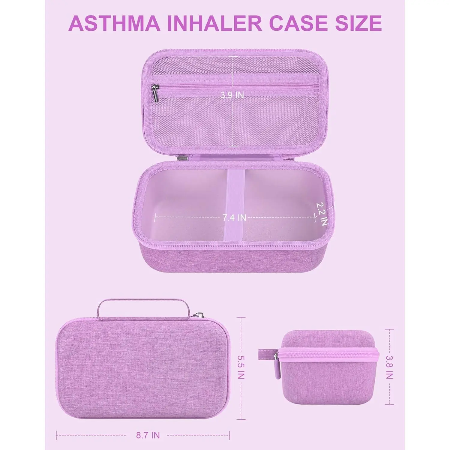 Travel Carrying Case for Asthma Inhaler, Handheld Spacer for Adults and Kids, Masks, Hard Inhaler Case with Mesh Pocket fit Medicine and Other Essentials, Purple