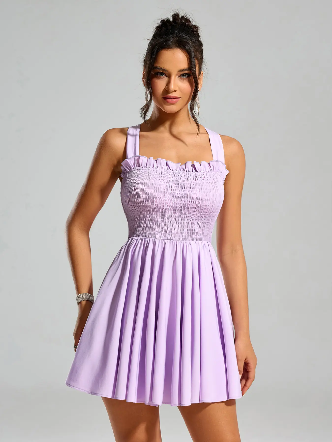 Backless Halter A-Line Dress, Back Cross Tie Hollow Out Dress, Waist Bow Tie Dress, Perfect for Parties, Dates, Daily Wear