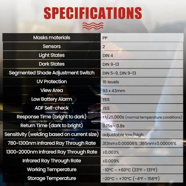 Arc Sensor Activation: The built-in arc sensor detects welding arcs in milliseconds, triggering the dimming screen to darken automatically—no more manual adjustments or delayed reactions.