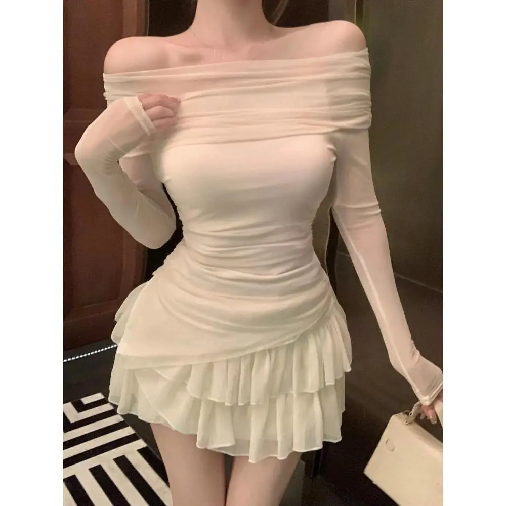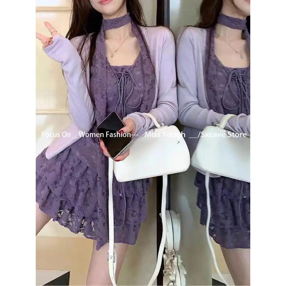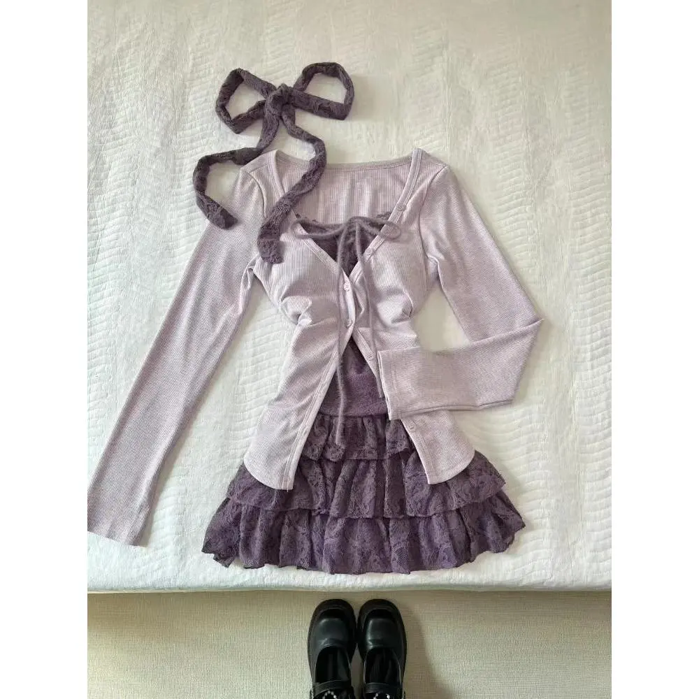 2026 New Women Birthday Rave Korean Fashion Gyaru Coquette Outfits 2 Piece Set Fake Two Pieces Top + Mini Ruffle Skirts Chic
