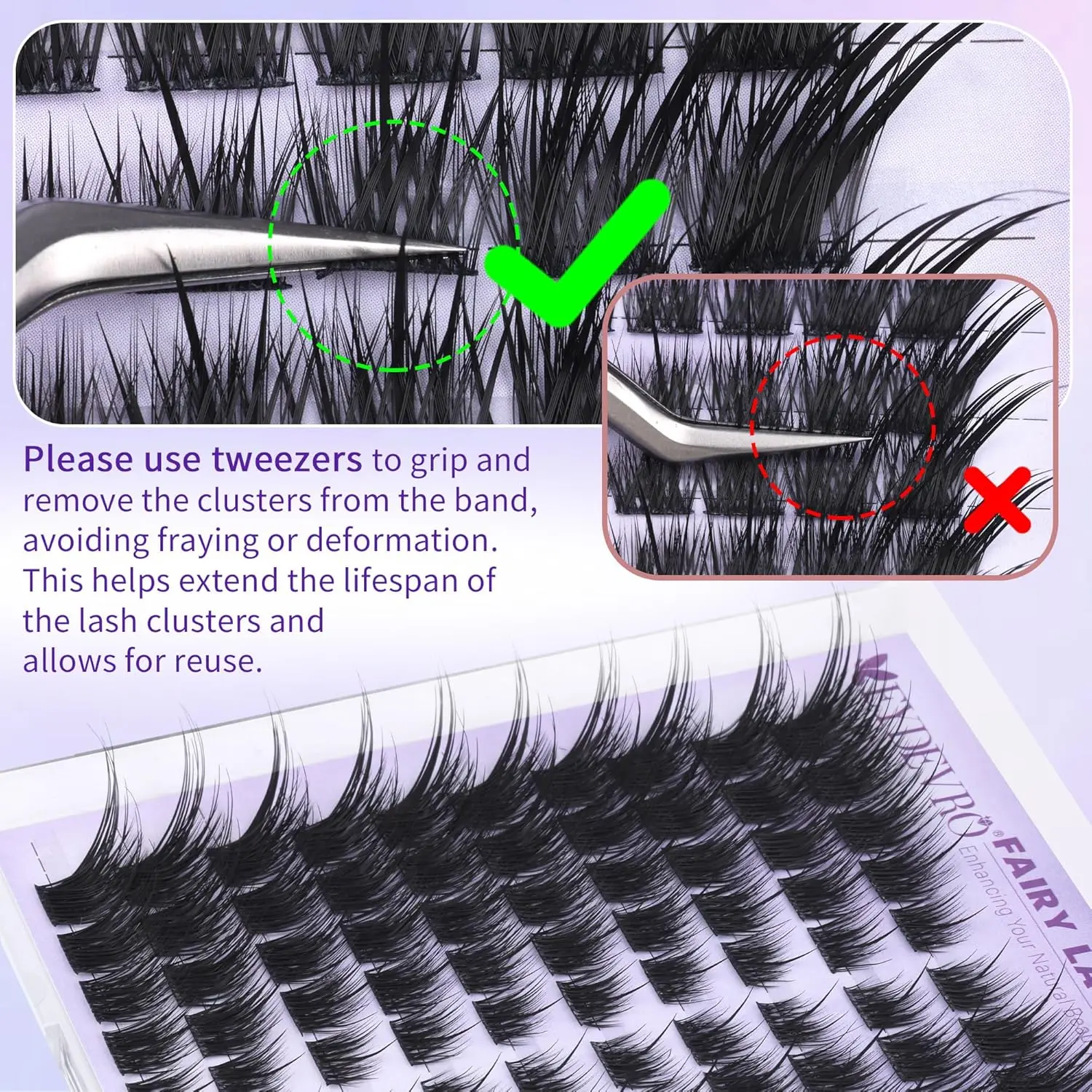 ·Unique Fox Eye LC Curvature for a Sexy Look: Achieve mesmerizing cat eye lashes in minutes at home; Our fairy lash clusters feature extended LC curvature at the outer corners, lifting your eyes for a sexy fox eye effect; No eyeliner needed - the tapered ends naturally create a winged look that defines your eyes beautifully