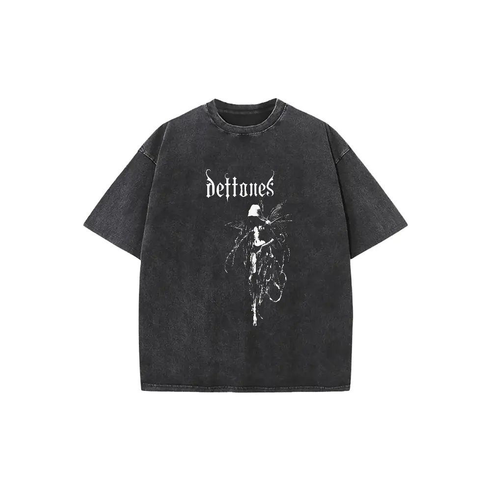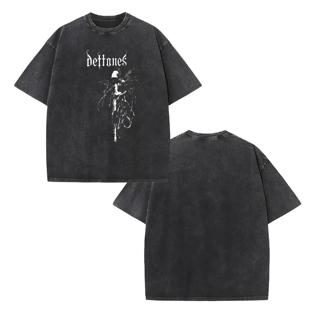 Unisex Deftones Retro Heavy Metal Graphic Vintage Washed T Shirt Rock Band Style Short Sleeve Tee