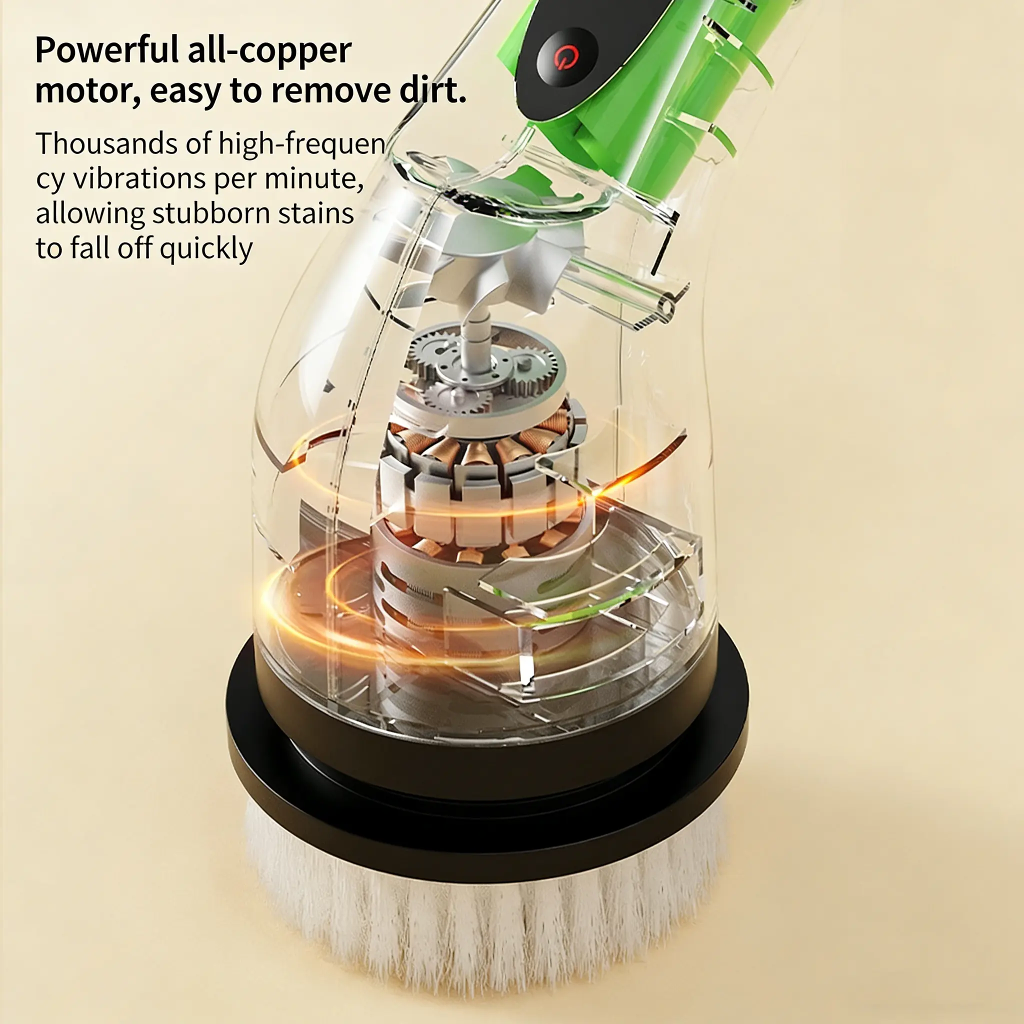 Equipped with a high-torque all-copper motor, this electric scrubber delivers thousands of high-frequency rotations per minute, blasting away tough grime, soap scum, hard water stains, and dirt from tile, grout, bathroom, kitchen, and more in seconds. No more elbow grease required – just let the power do the work!