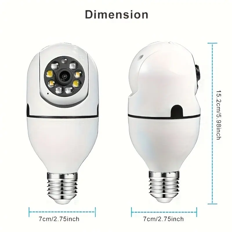 Light Bulb Security Camera, 360° Pan/Tilt WiFi Home Surveillance Cam with Full Color Night Vision, Two-Way Audio, Motion Detection, Waterproof for Indoor Outdoor E27 Socket