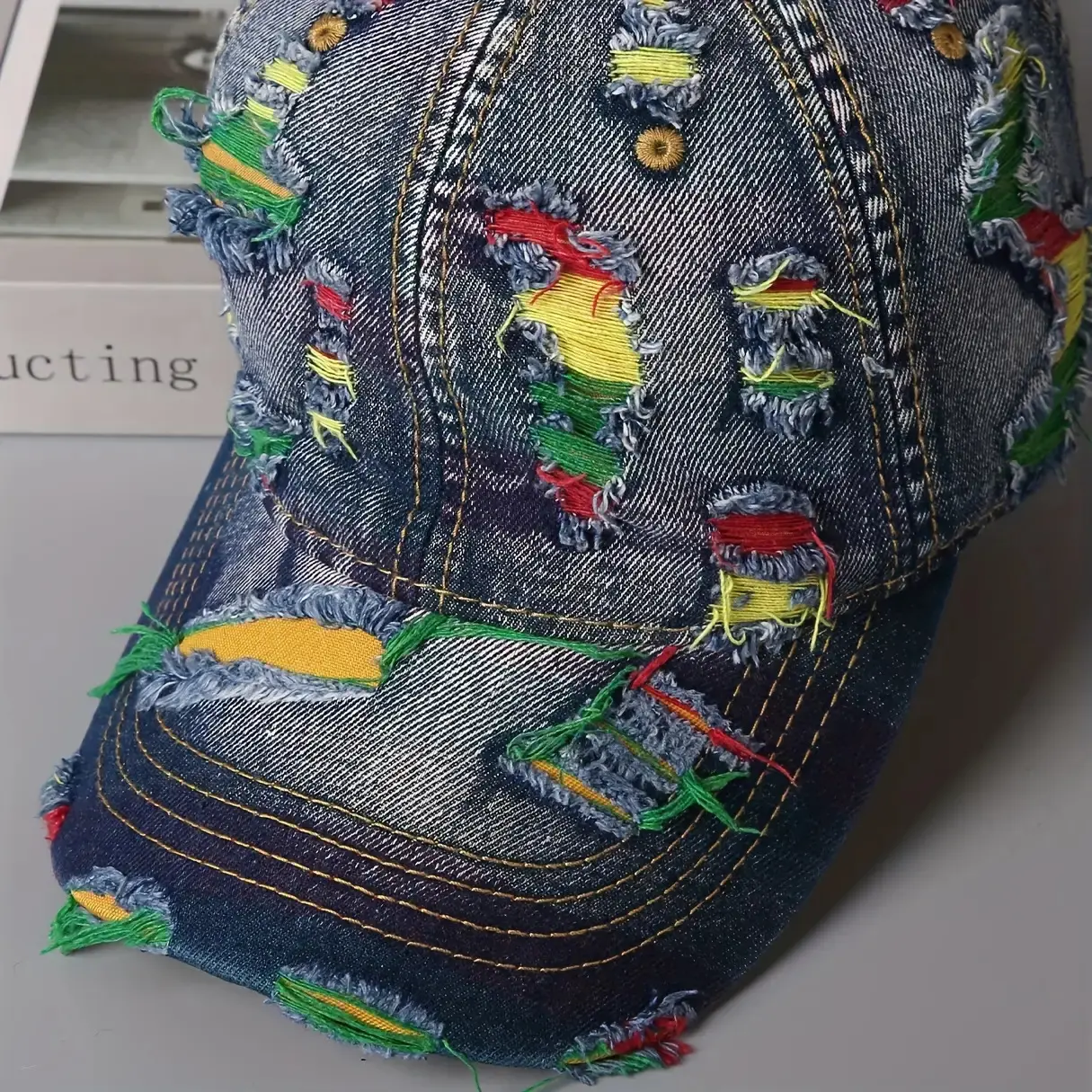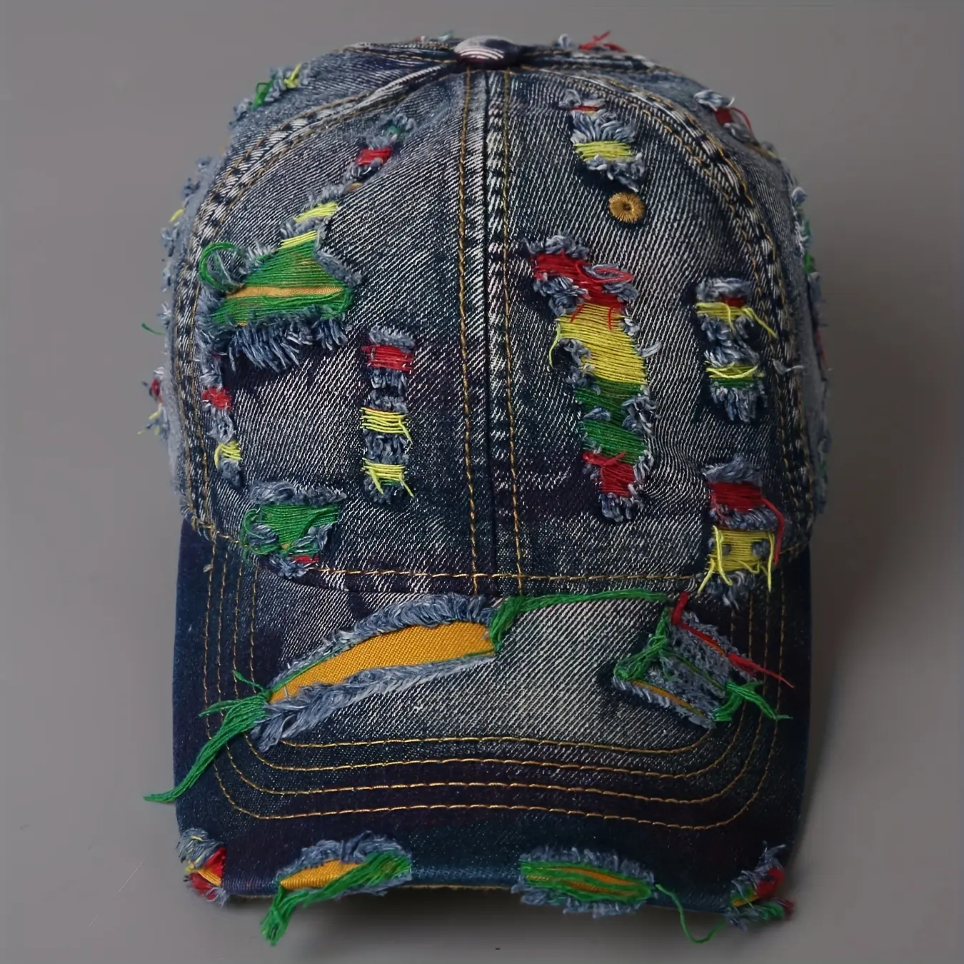 [Vintage Denim Baseball Cap] Vintage Distressed Denim Baseball Cap | Washed & Frayed Brim, Adjustable Snapback Closure, Lightweight Unisex Streetwear Hat for Men & Women, Casual & Parties