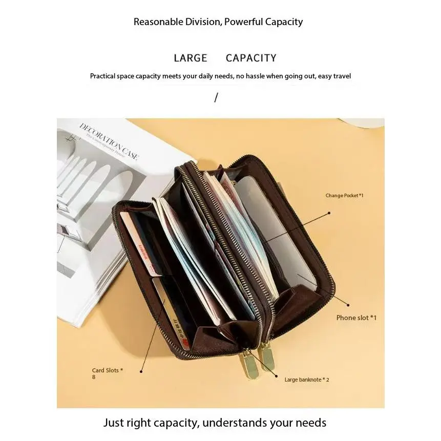 Large Capacity: With ample space, this wallet is ideal for carrying all your essentials.It includes double zippers for secure storage of your phone and other items.📱