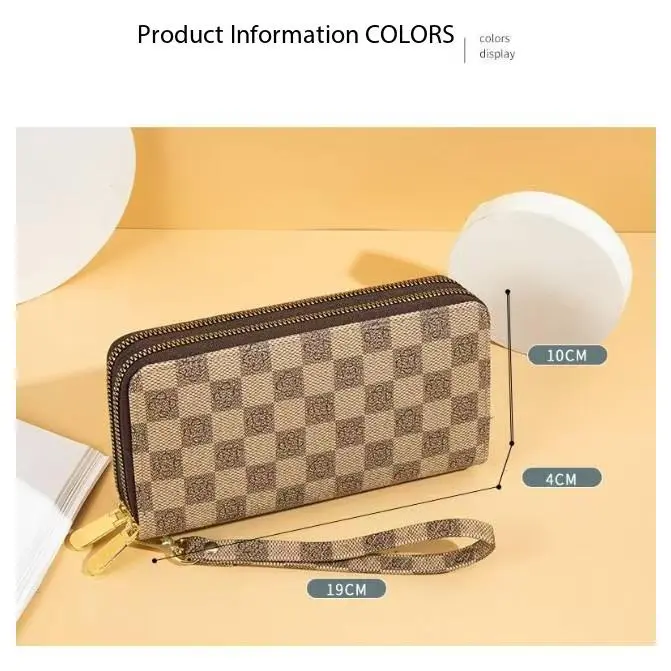 2026 New Women's Wallet European and American Retro Trendy Printed Plaid Large Capacity Clutch Bag with Double Zippers Phone Purse tote Adjustable Strap Classic Vintage Women's Crossbody Tote Flap Crossbody Bag