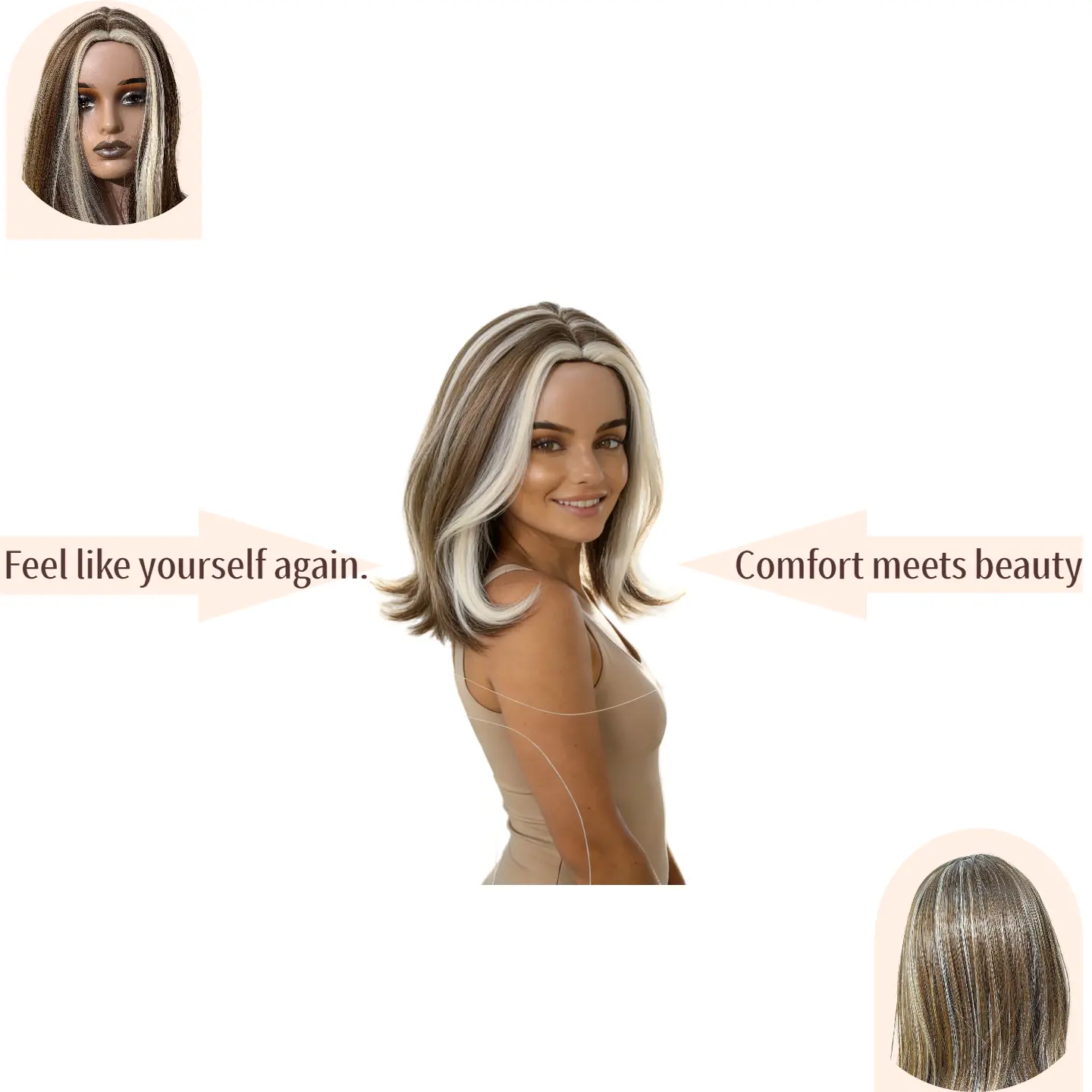 The Piano-Color Wig is a must-have for women who love to experiment with their style. Its light brown base with white highlights makes it a standout choice. Suitable for both everyday wear and special occasions, this wig is a practical and fashionable accessory.