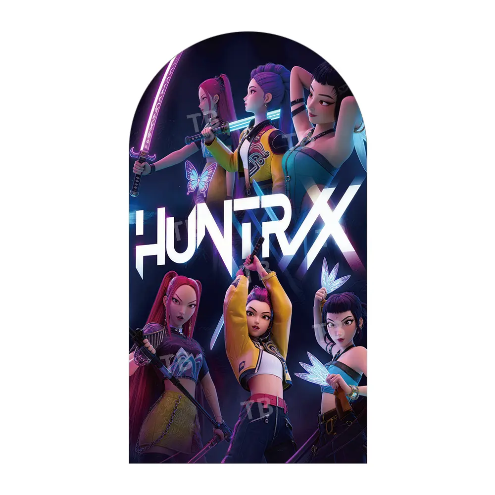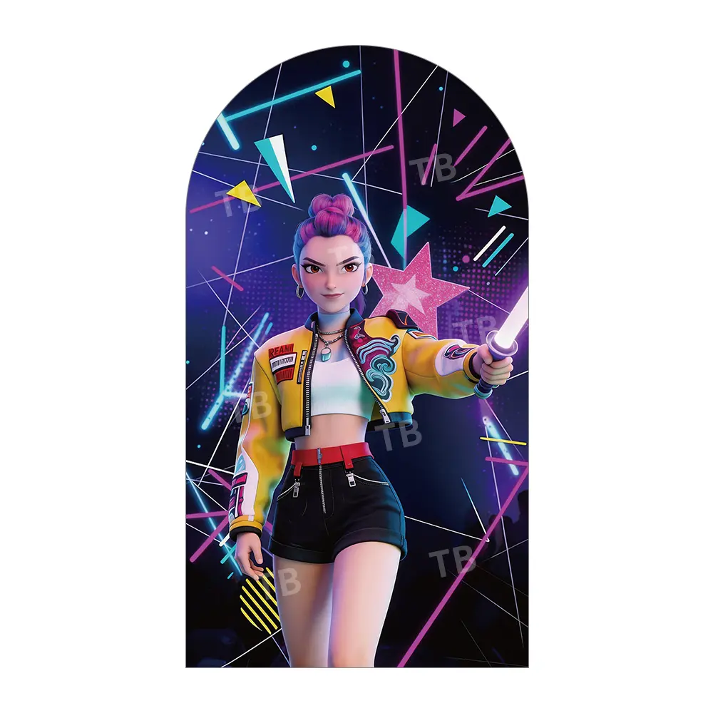 Neon Geometric Anime Girl Group Arch Backdrop Cover Set for Birthday Party Decor