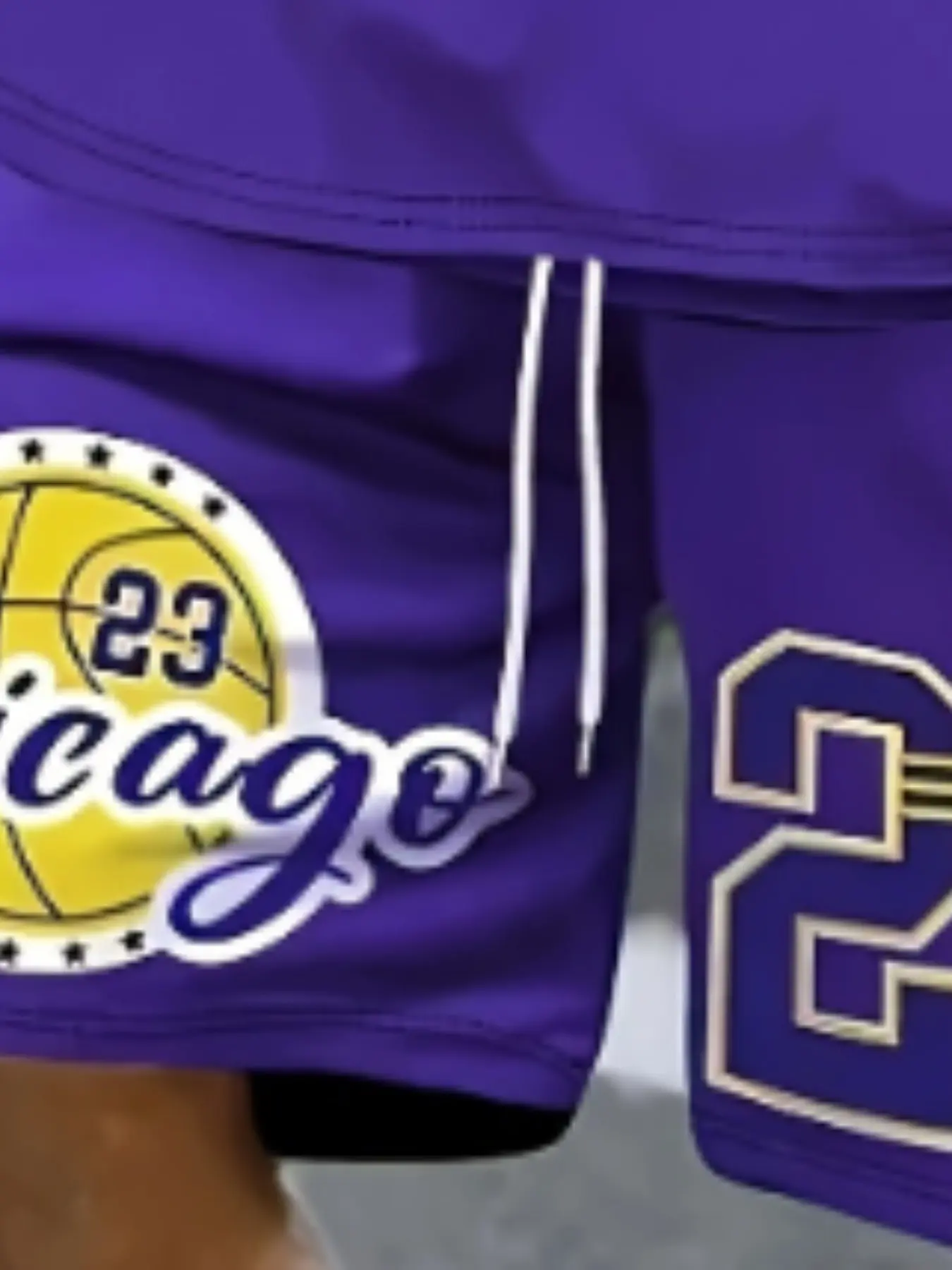 Men's Fashion Round Neck Short Sleeve Set, Chicago Letter Number 23 Digital Print, Summer Casual, Comfortable Vacation Sports Wear