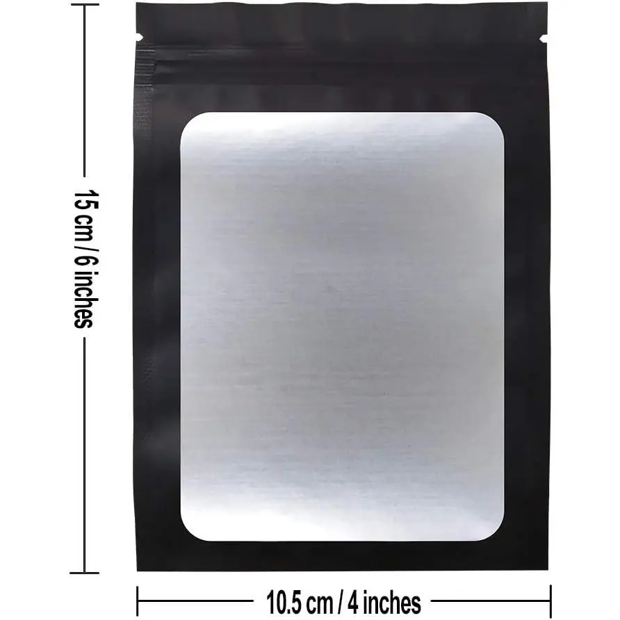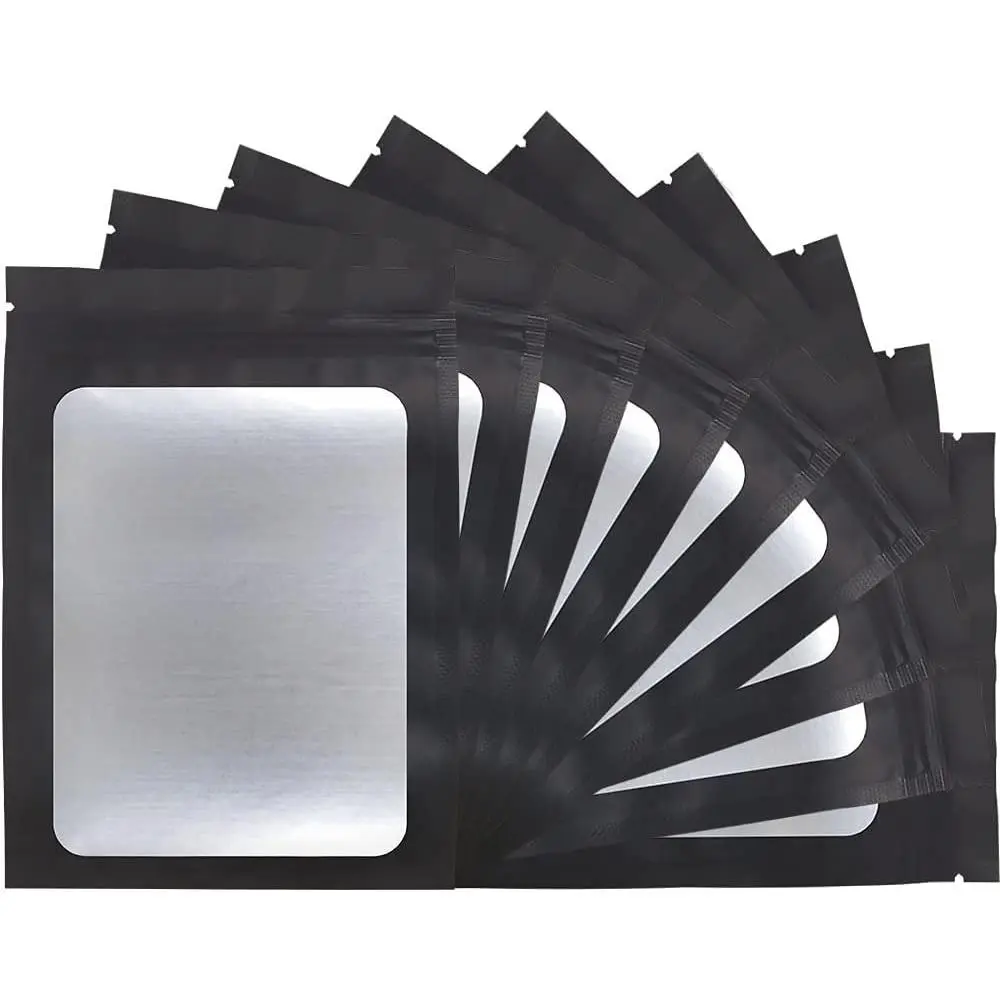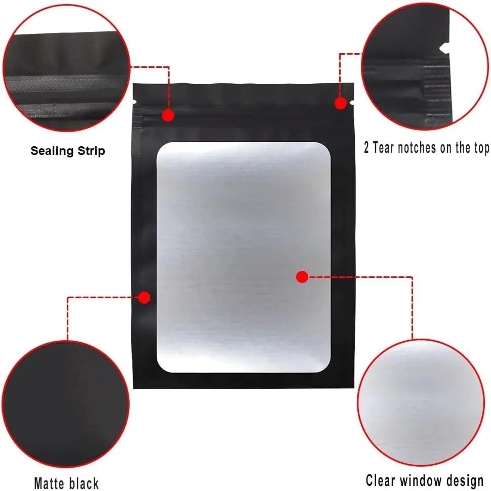 The mylar bags have a Matte Black smooth texture, metallic mylar and foil material, which is durable, resealable.