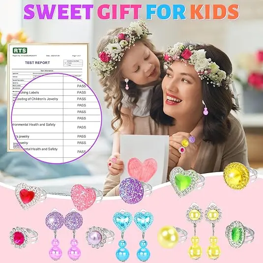 ·SAFE & COMFORTABLE DRESS UP JEWELRY FOR KIDS: Made of non-toxic, skin-friendly plastic with smooth edges. Earrings are clip-on, no piercing needed, ensuring safety for toddler girls. Tested against the US CPSIA & ASTM standards for worry-free play
