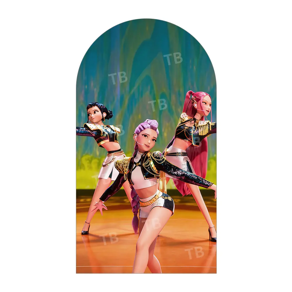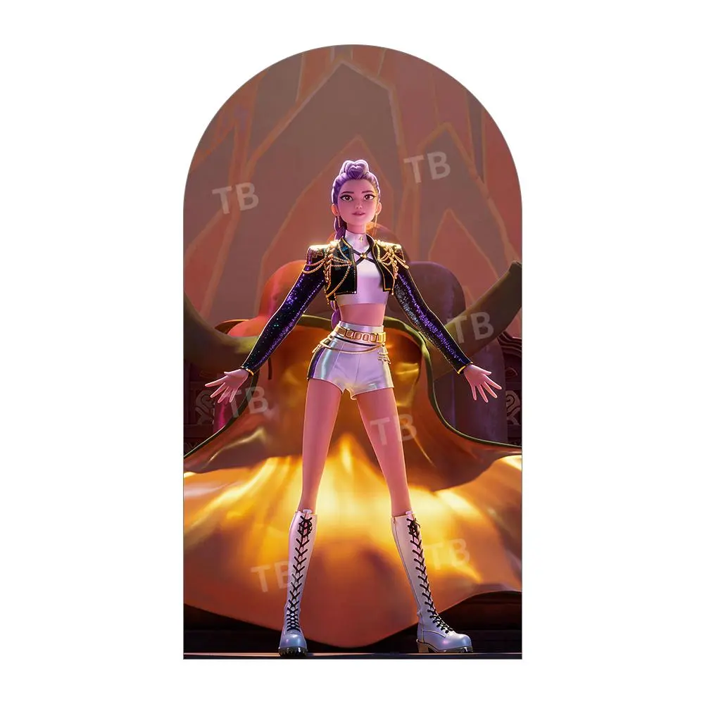 Golden Warrior Anime Girl Arch Backdrop Cover Set for Concert Themed Party