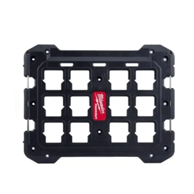 Our PACKOUT Modular Storage System is the industry's most durable and versatile storage system. The MILWAUKEE PACKOUT Mounting Plate is constructed with impact-resistant polymers, giving you up to a 100lbs weight capacity when mounted to the floor and 50lbs when mounted to walls. Metal-reinforced mounting holes allow you to securely fasten the Mounting Plate to most surfaces, while metal-reinforced tie-down points help you to secure job site supplies to the Mounting Plate. Our PACKOUT Modular Storage System allows you to customize and build your own storage system to easily transport and organize your tools and accessories.