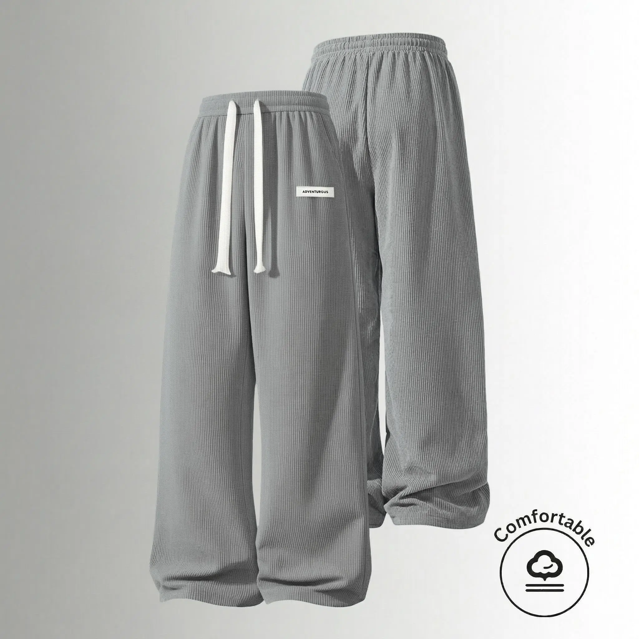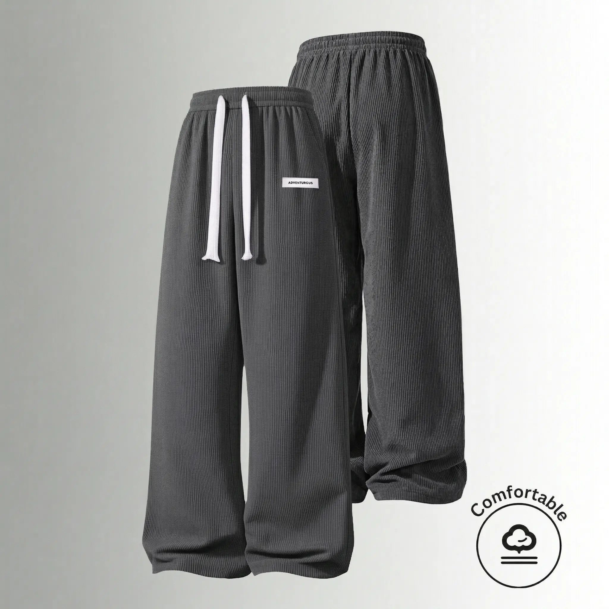 Men’s American vintage corduroy straight-leg pants—trendy, versatile brown casual long trousers with a drawstring waist and loose fit; simple, stylish men’s bottoms suitable for everyday wear and sports.