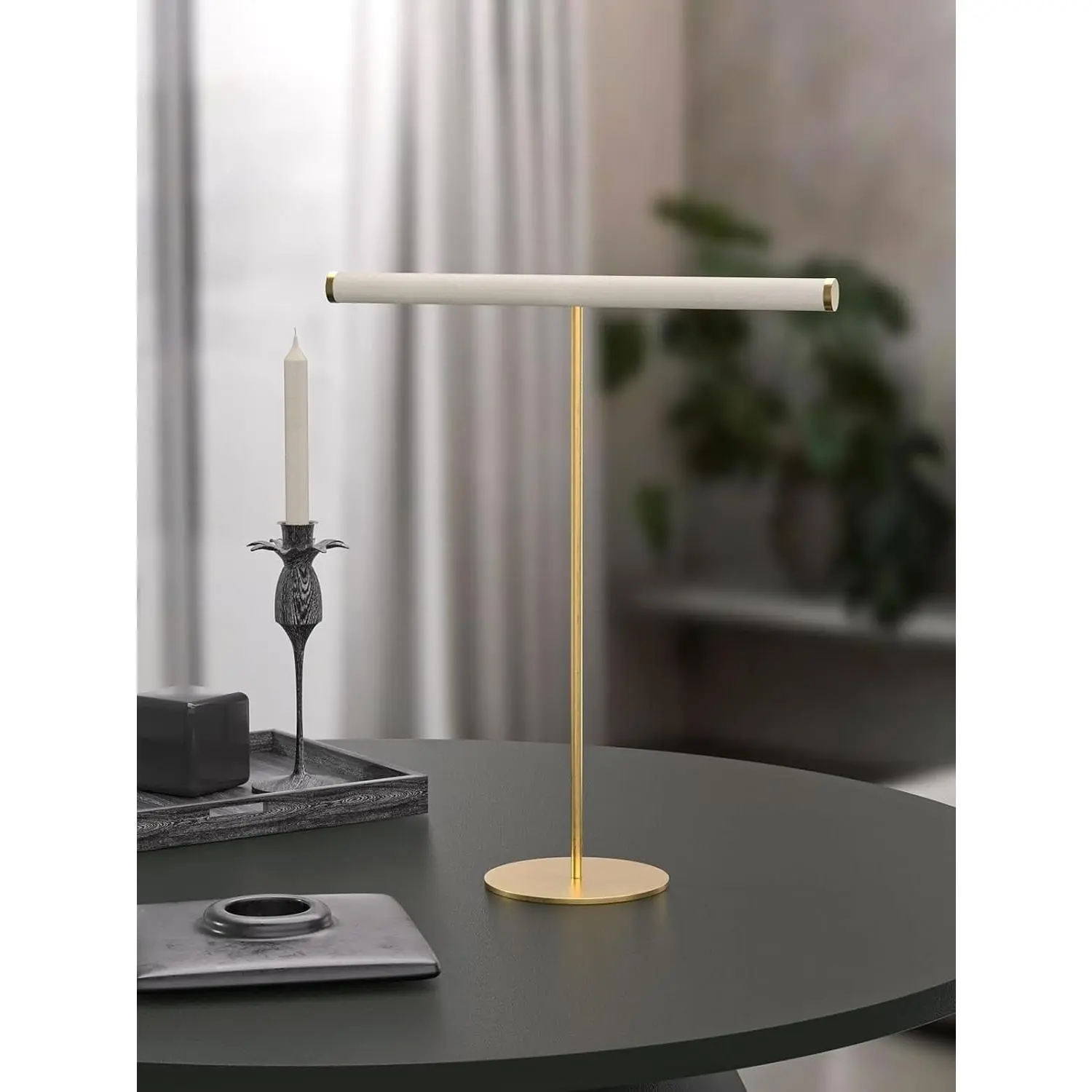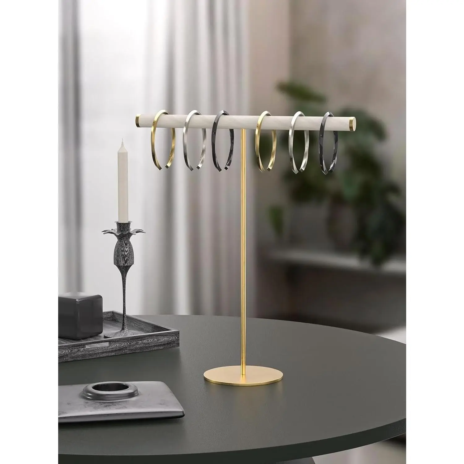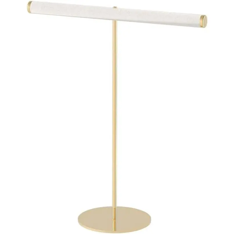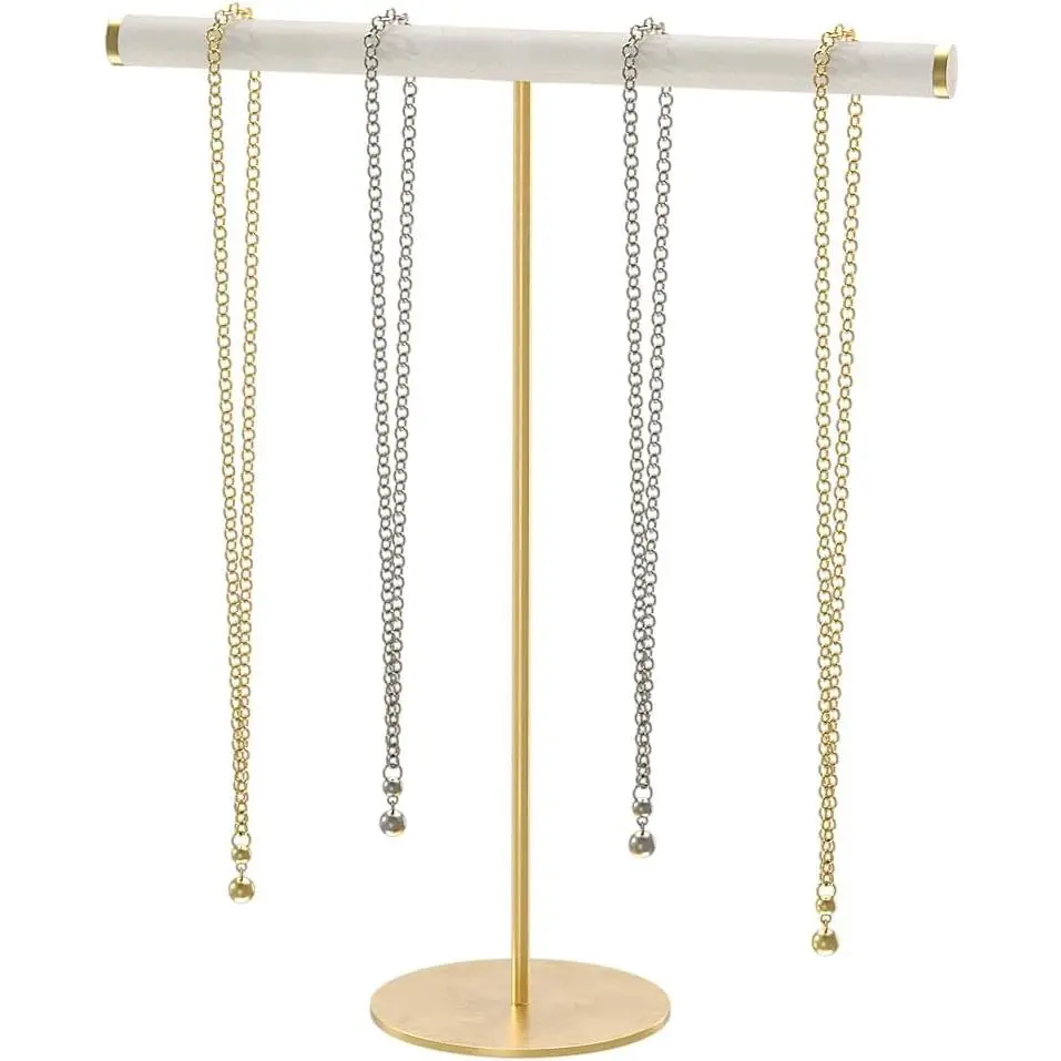 T-Bar Necklace Organizer Stand, Velvet Necklace Bracelet Holder Stand with Metal Base, Hanging Jewelry Display Organizer for Women Girls (Gold 1.6cm thickness tube)