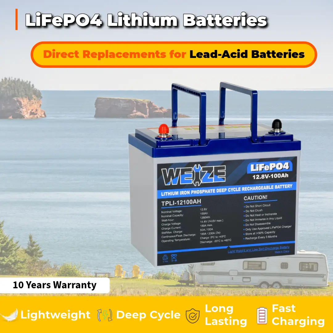 Smaller. Smarter. Stronger.: The WEIZE 12V 100Ah LiFePO4 Battery delivers 1280Wh of power in a compact, lightweight design—25% smaller and 50% lighter than traditional lead-acid batteries, yet lasts 5X longer. Ideal for deep cycle upgrades in fish finders, ice fishing gear, RVs, solar systems, home alarms, and more. Size won’t limit your power.