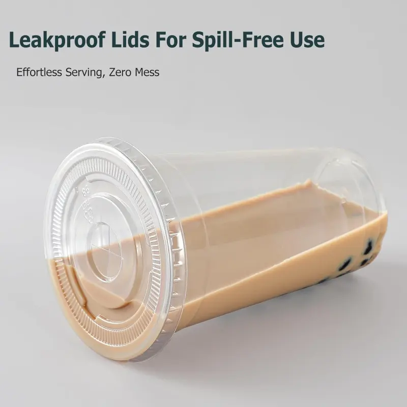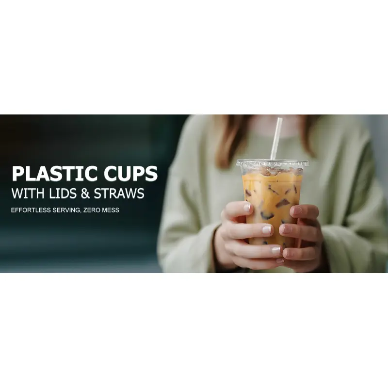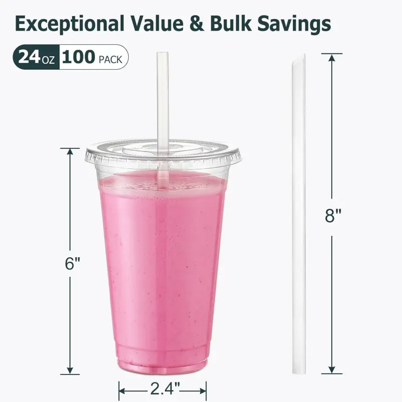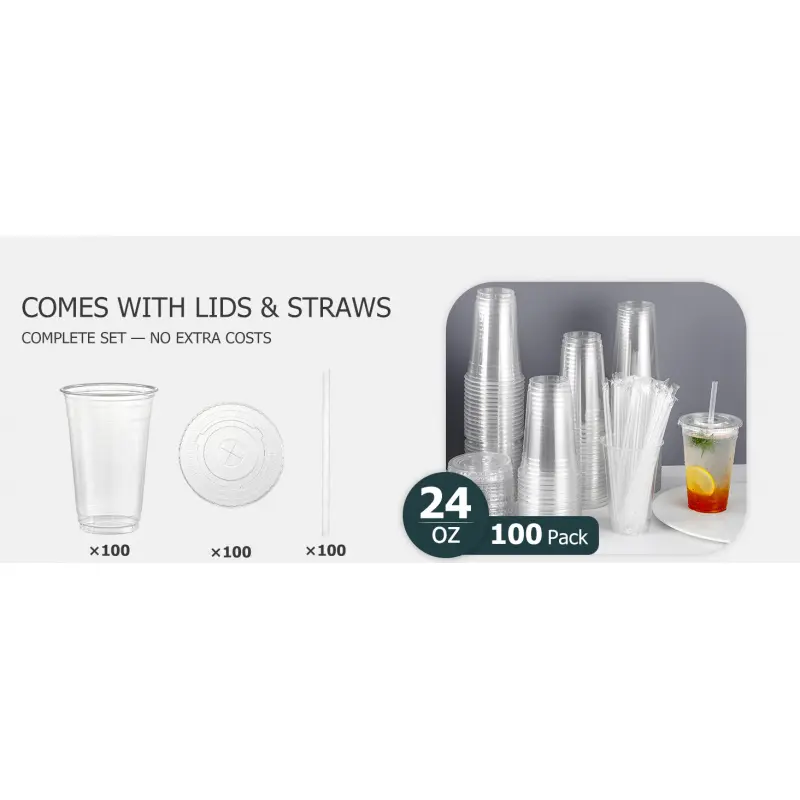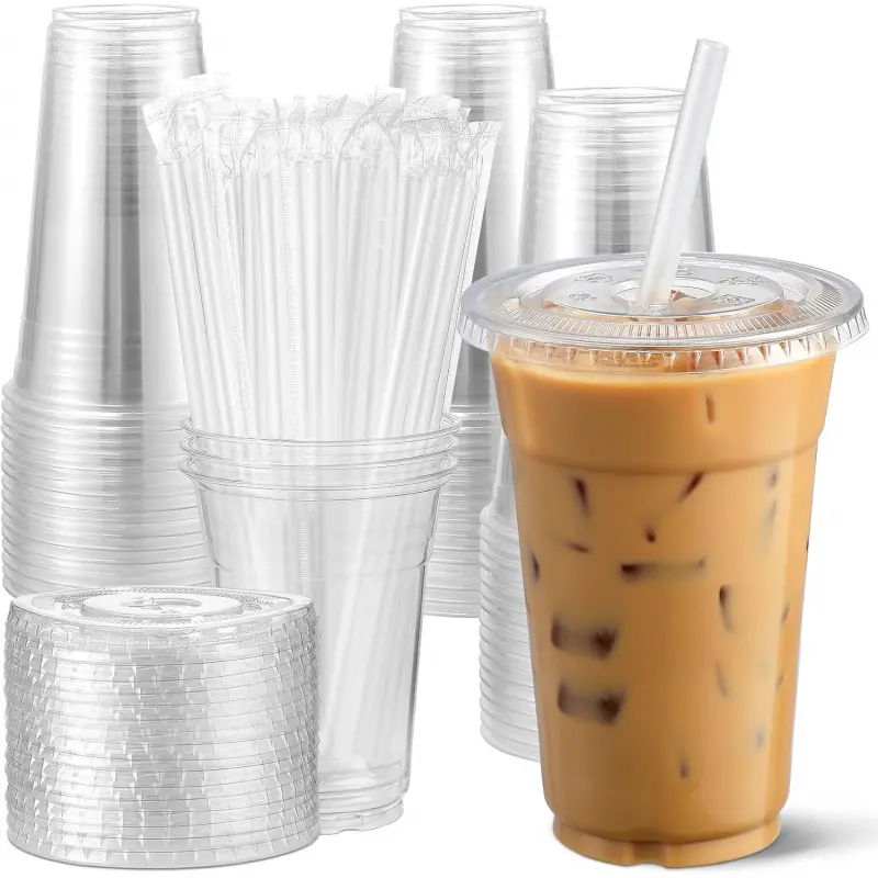 100 Pack - 24 oz Clear Plastic Cups with Lids and Straws, Sturdy & Food Safe Iced Coffee Cups with lids, Disposable Iced Coffee Cups for Cold Drinks