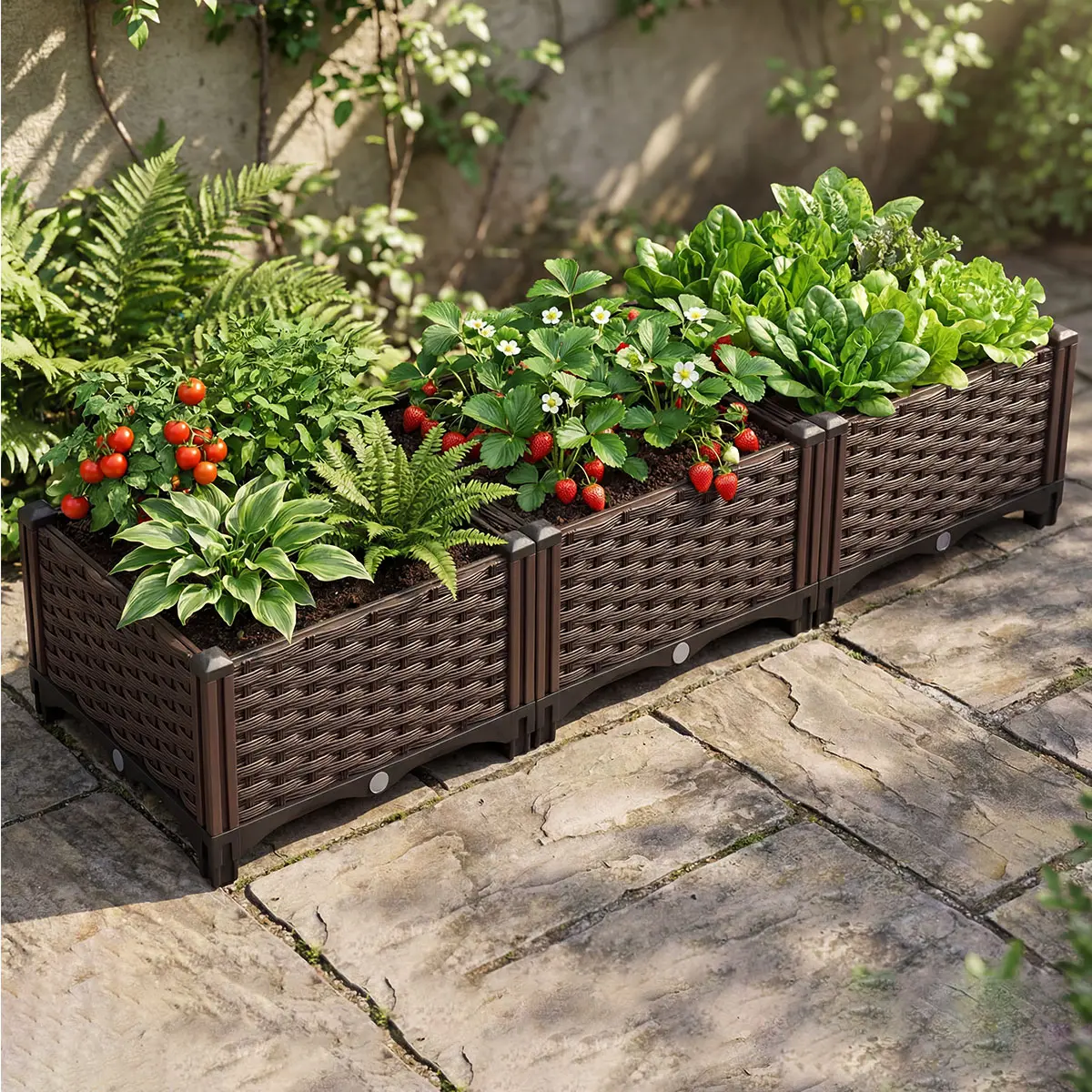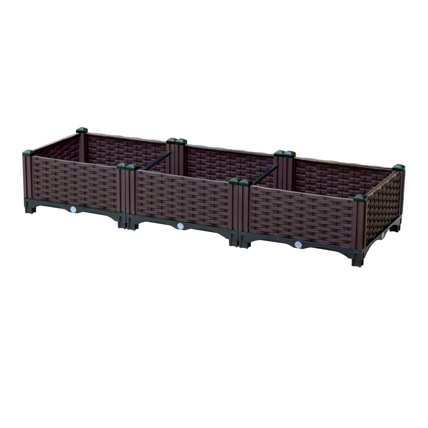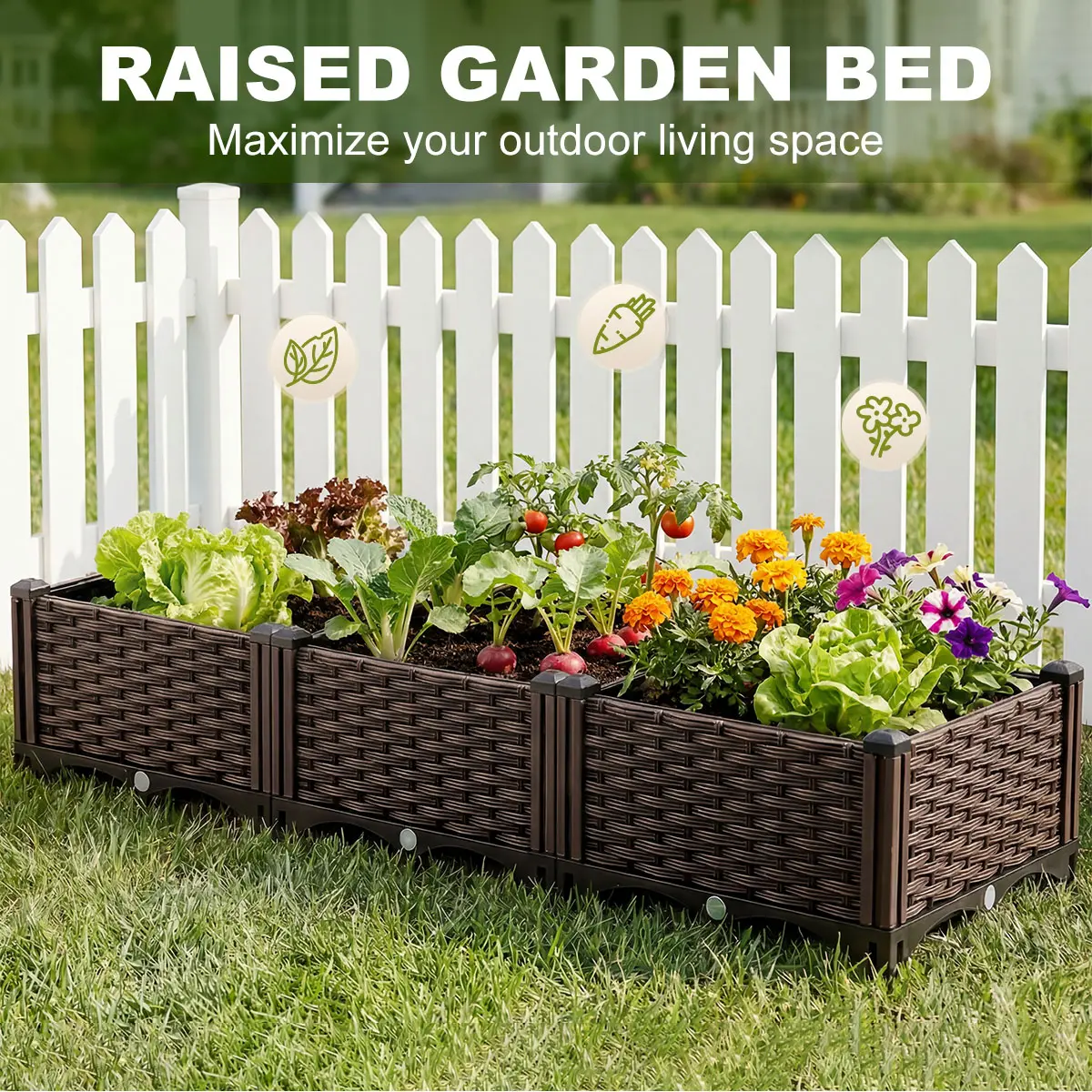 Rectangular Raised Garden Bed Kit Indoor Outdoor Plastic Planter Grow Box for Fresh Vegetables, Herbs, Flowers & Succulents, Brown, 46.4'' x 15.7'' x 8.66''