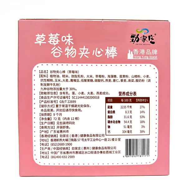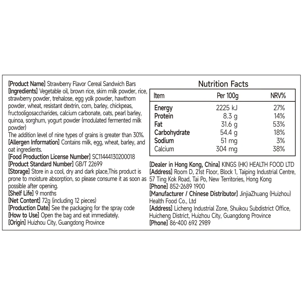 ·Strawberry Flavor Cereal Sandwich Bars are a delightful non-fried snack. Each box contains 72g of these delicious bars, with 12 pieces per box. 🍪