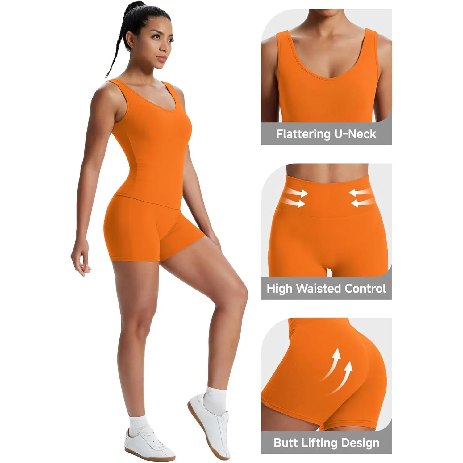 Workout Sets for Women 2 Piece U Neck Crop Tank Top High Waisted Shorts Athletic Gym Yoga Outfits Activewear