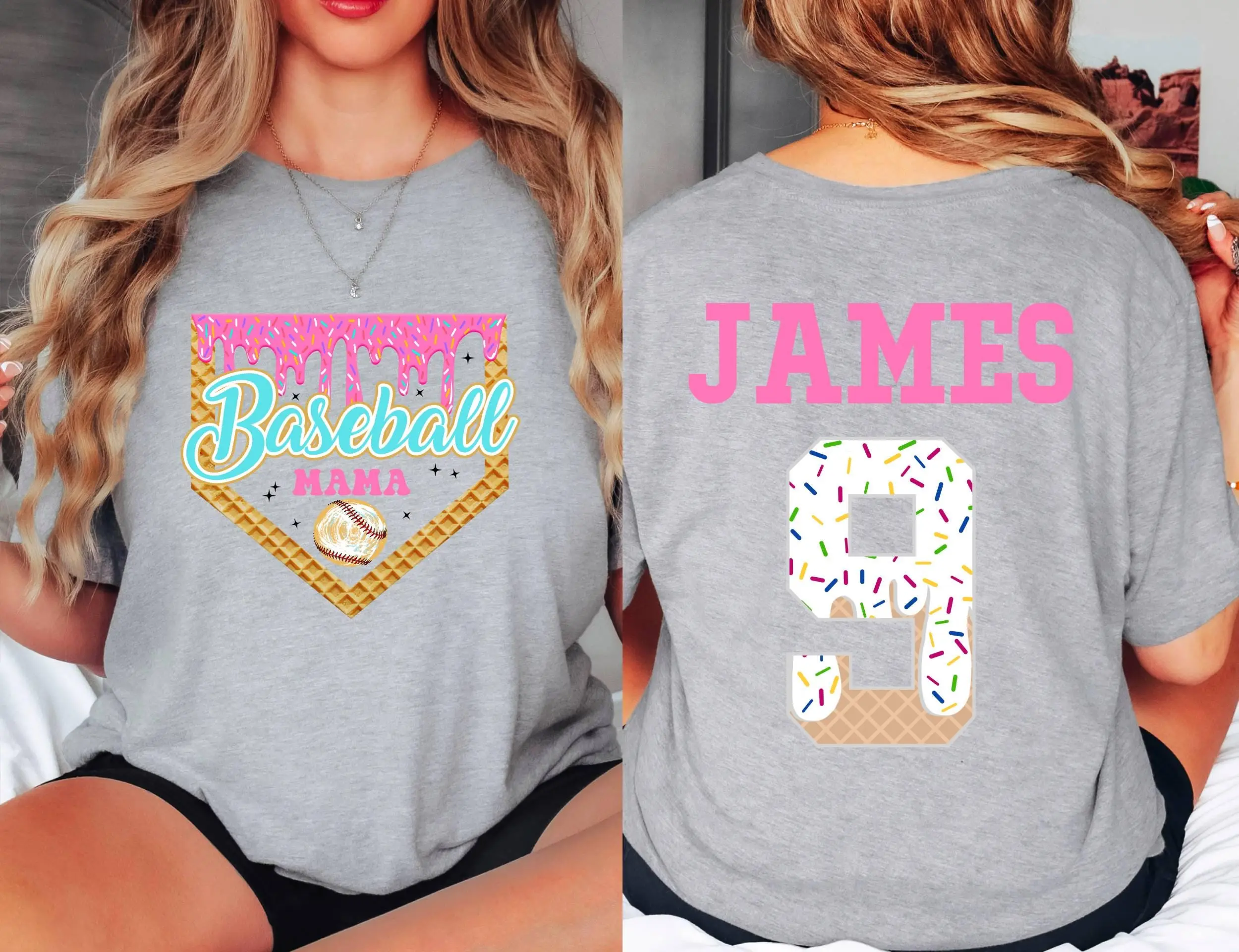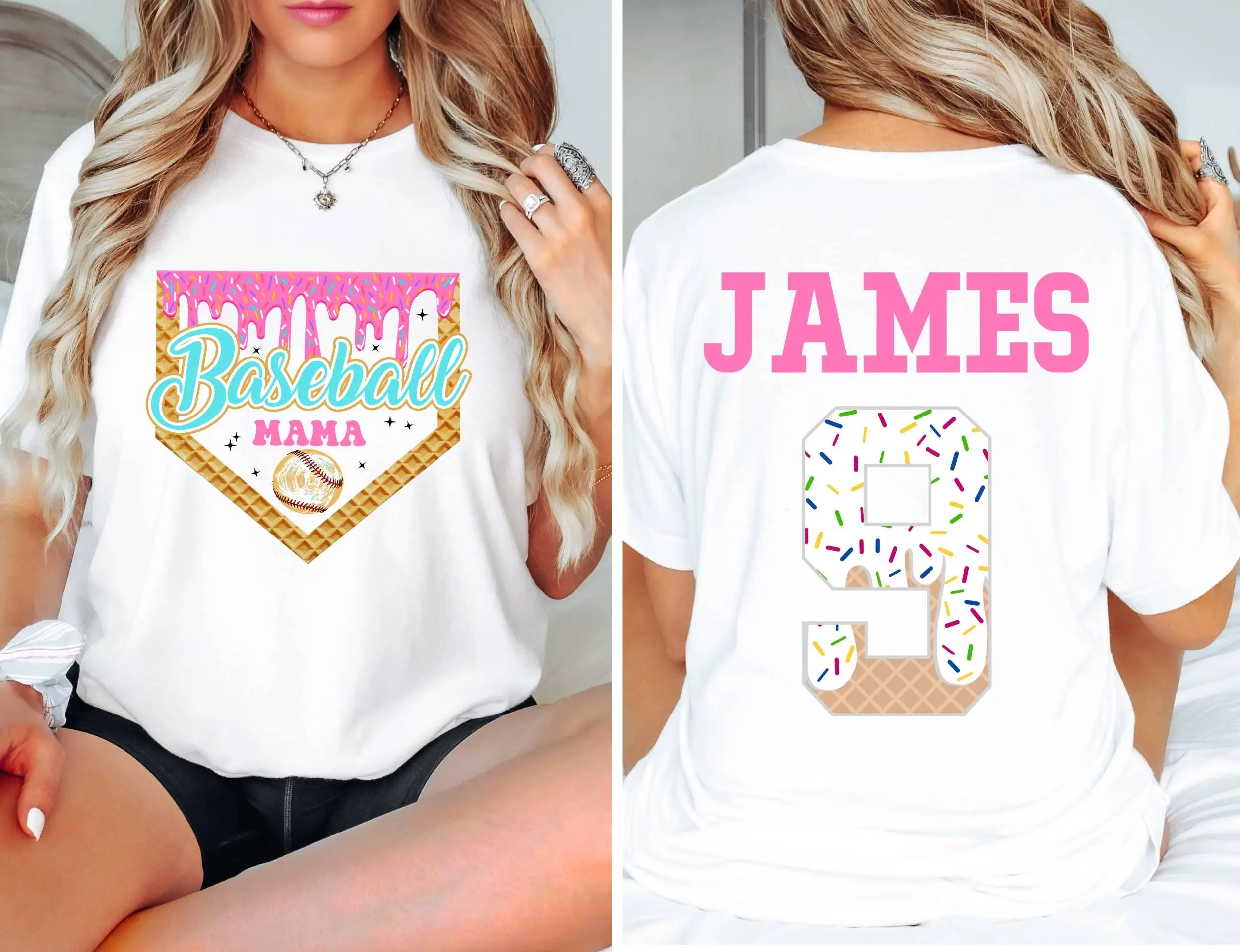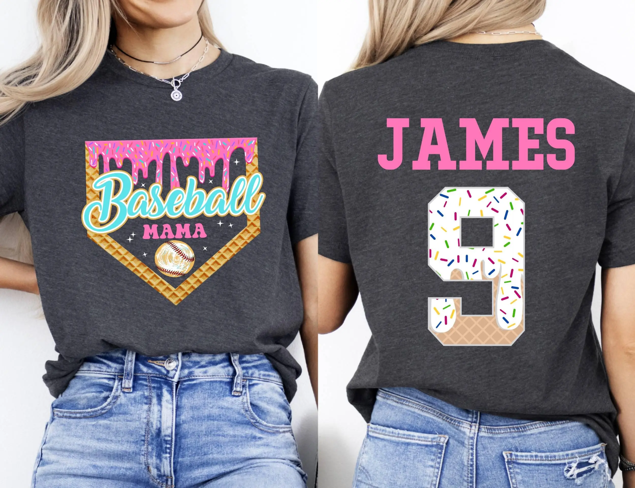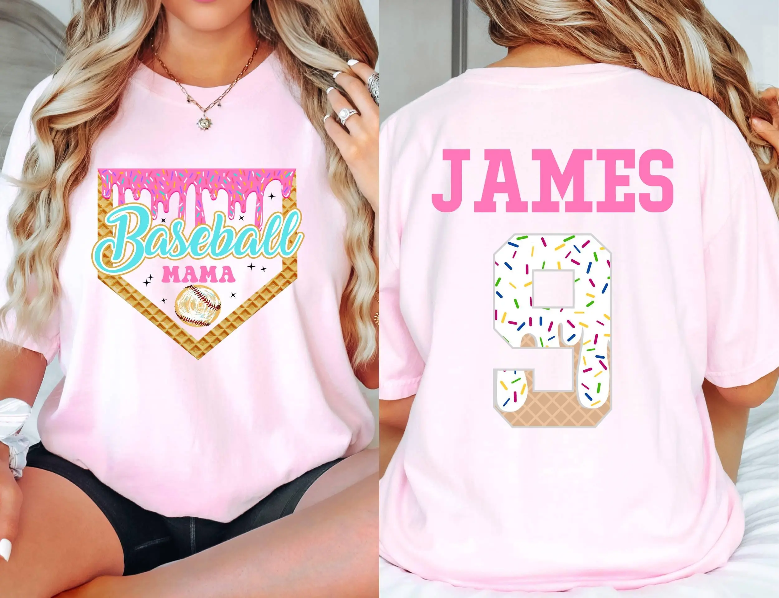 Custom Baseball Drip Mama Shirt, Retro Team Mom T Shirt, Personalized Ice Cream Drip Mom Tee,Mother's Day Gift,Name & Number Jersey
