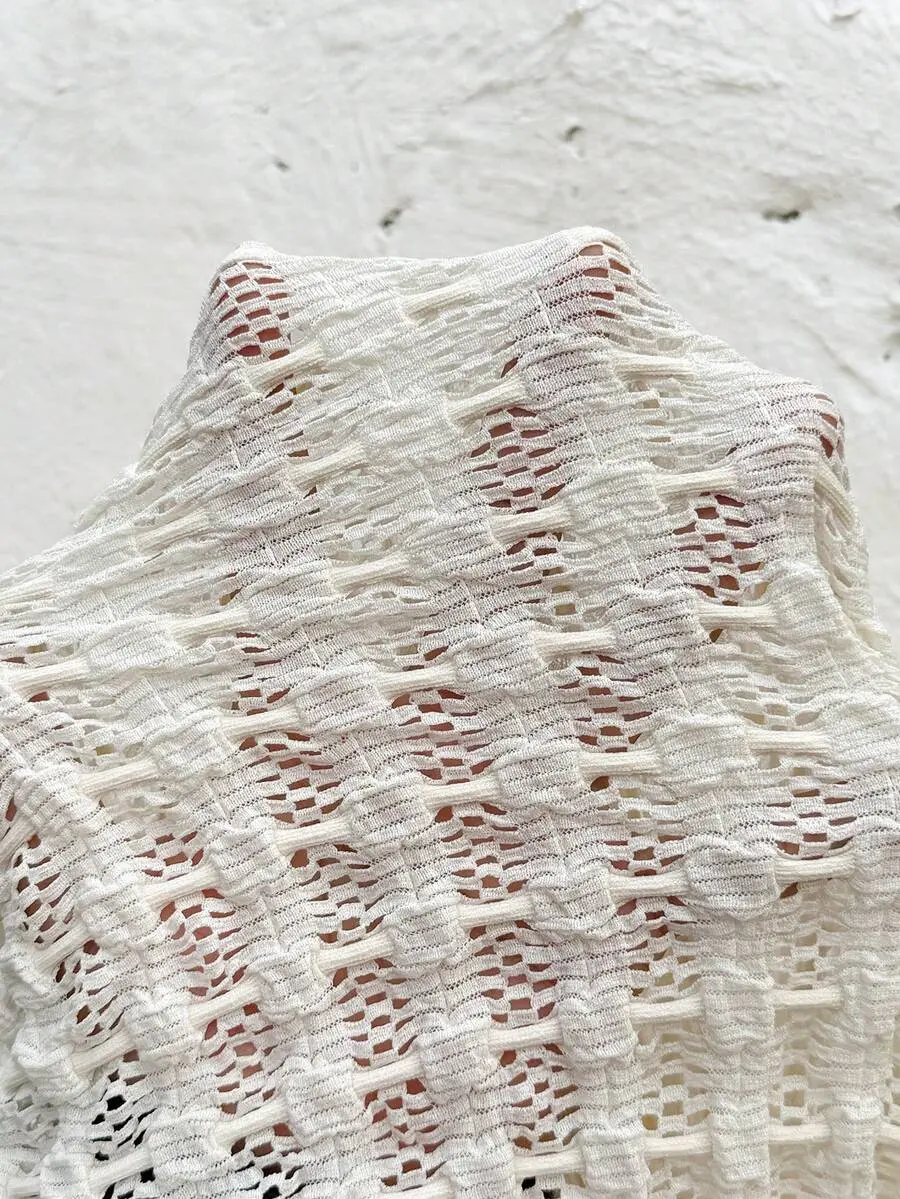 TAMALLA Pregnancy White Crochet Textured Off-Shoulder Dress With Hollow Back And Elegant Hem, Suitable For Party, Wedding, Formal Events, Sexy