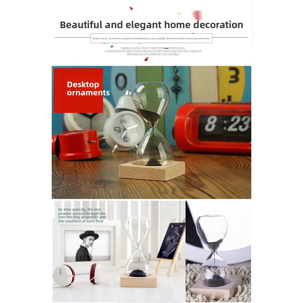 Instead of regular sand, our hourglass is filled with fine iron filings.Hidden inside the natural beech wood base is a powerful rare-earth magnet.When you flip it over, the magnetic iron sand falls gracefully and then magically forms beautiful spiky stalagmites and unique patterns as it interacts with the magnetic field.Every flip creates a completely different sculpture!