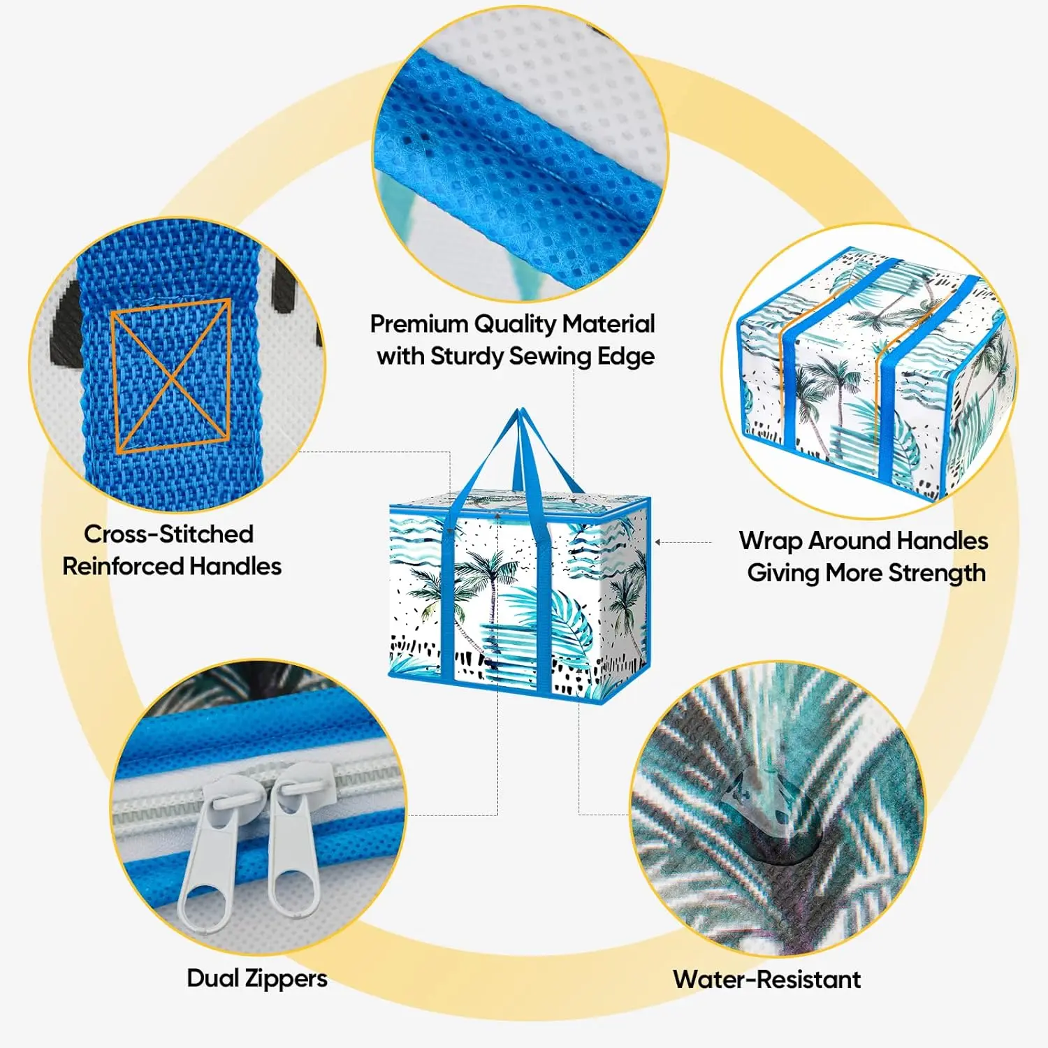 These reusable insulated bags fold flat for easy storage and are eco-friendly alternatives to disposable plastic bags. They are built with durable materials designed to last through many uses.