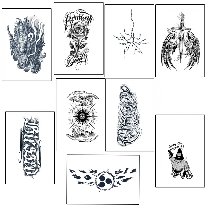 Set of 9 large herbal tattoo stickers, including floral letter designs; lasts 7–15 days, waterproof and resistant to friction, realistic effect; suitable for those who don’t want tattoos but are sensitive to pain.