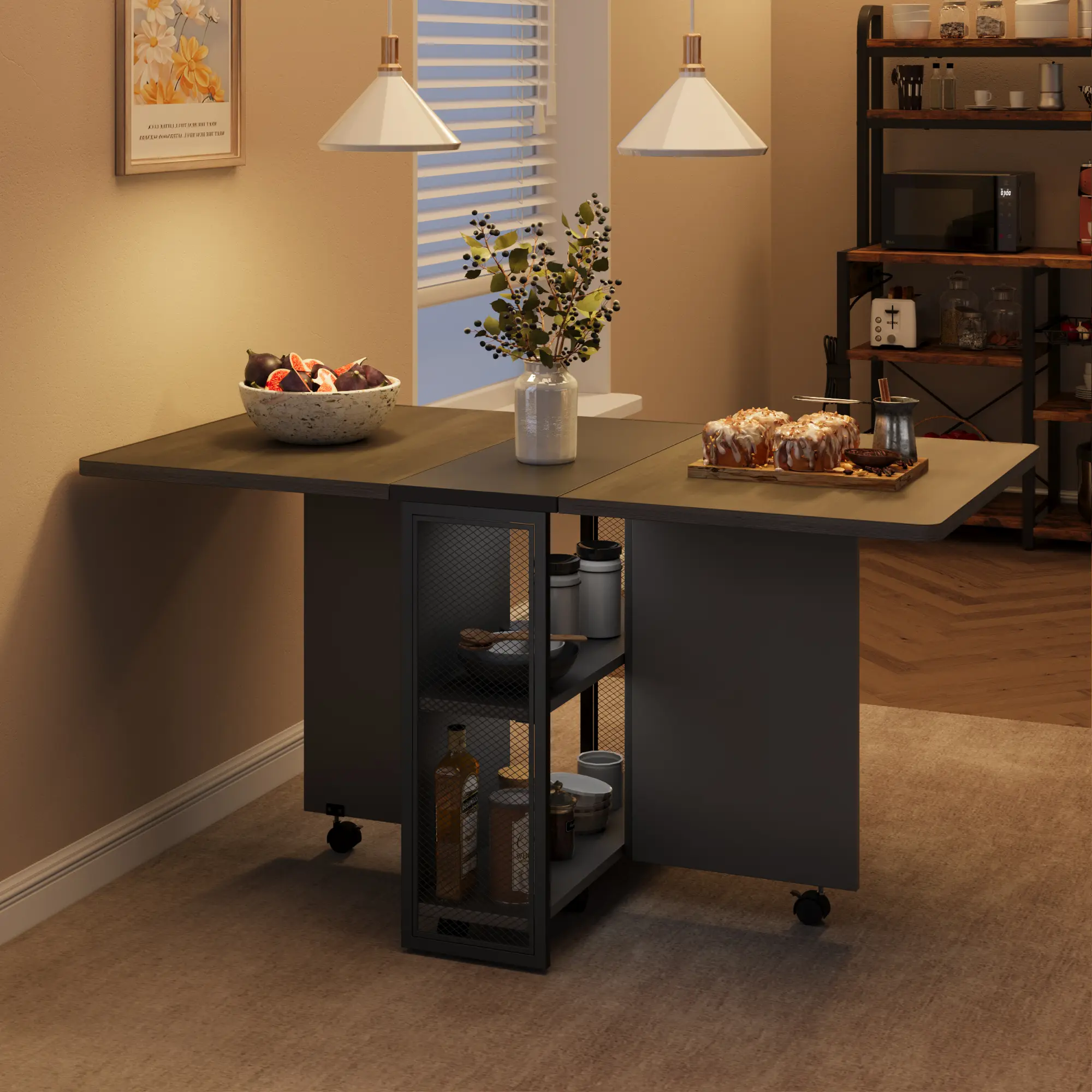 Β·Space-Saving Innovation: The extendable drop leaf allows for quick transformation from a compact console to a spacious dining table, perfect for any occasion or daily use.