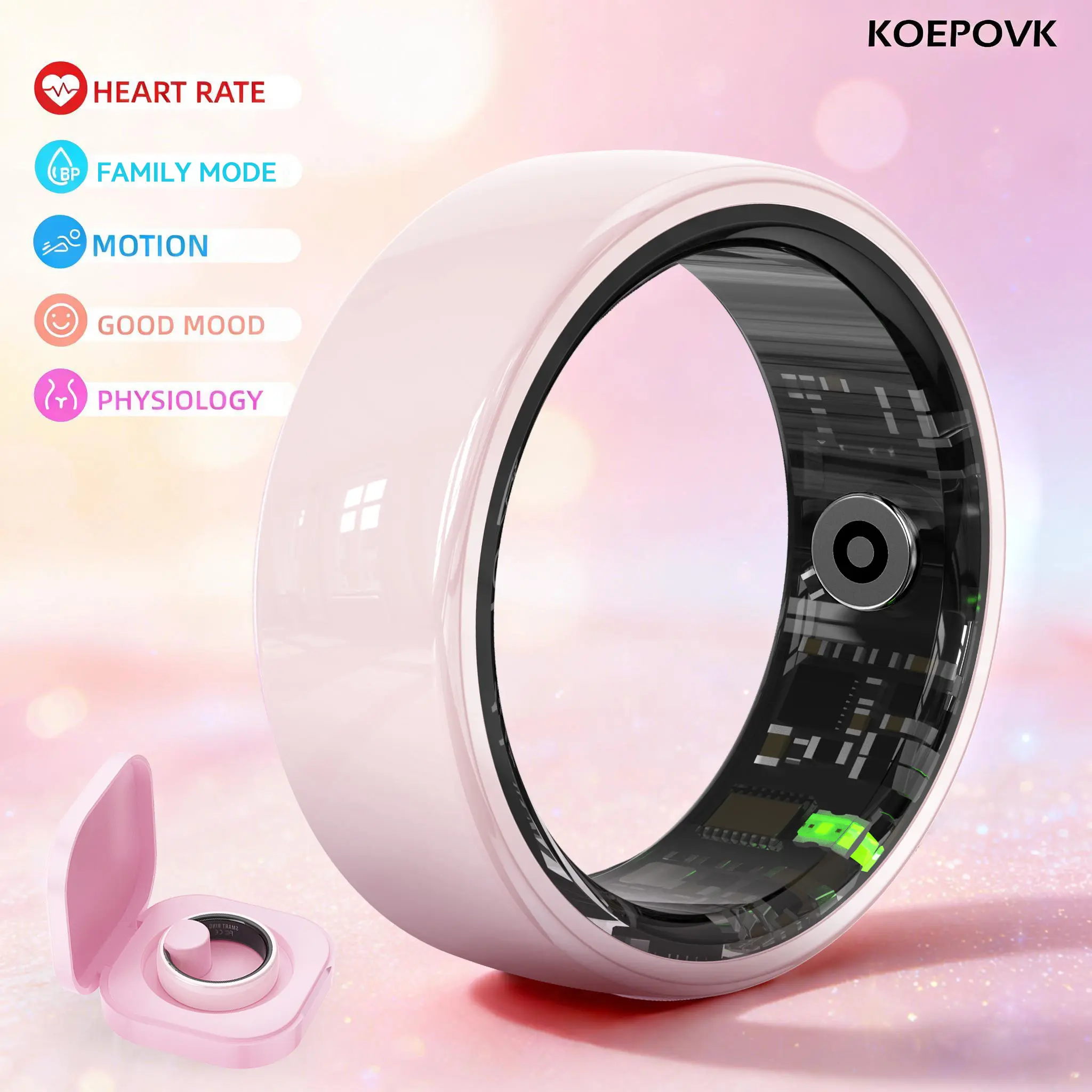 The KOEPOKV Ceramic Smart Ring is a stylish accessory for men and women. Its sleek pink color complements any outfit. This wearable device is not just a tracker but a fashion statement. It comes with a charging case for convenience. Start your health journey today!
