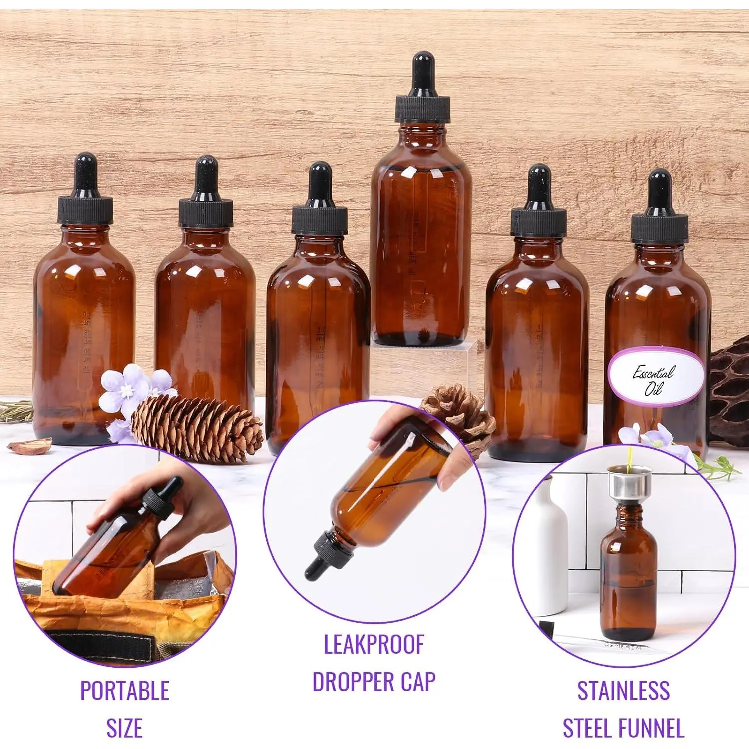 4 oz Dropper Bottles Glass 24Pack, Amber Glass Tincture Bottles with Dropper - Dropper Bottle 4 oz with Funnel/Stickers/Plastic Graduated Pipette (4fl.oz, Set of 24)