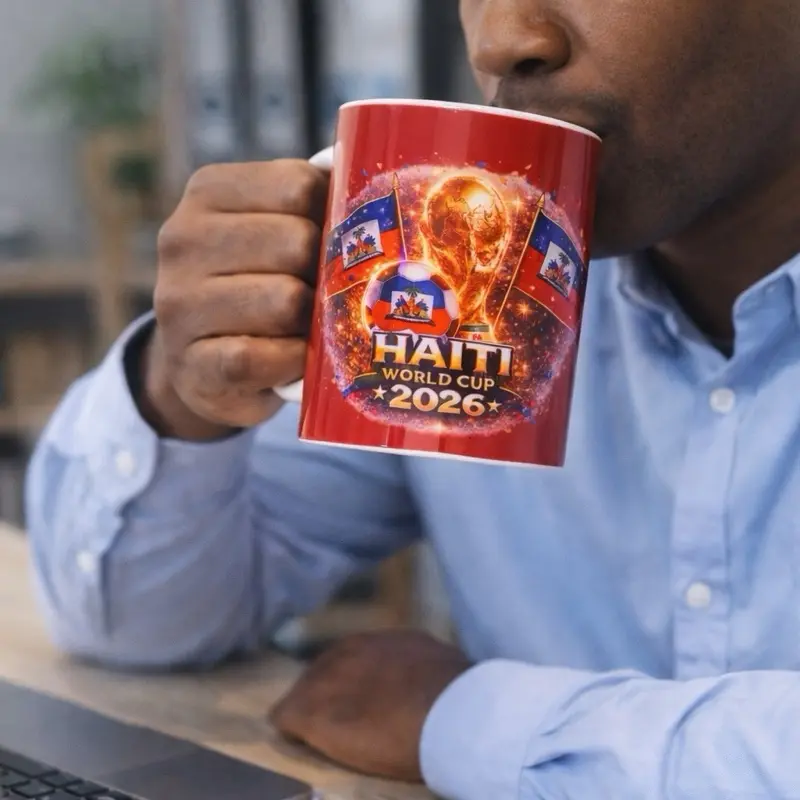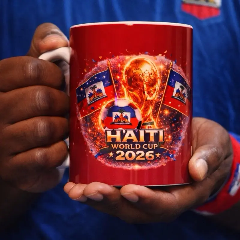 Designed with vibrant colors, the iconic trophy, and Haitian flags, this mug is perfect for showing your pride every day — whether you’re watching the game or enjoying your morning coffee.