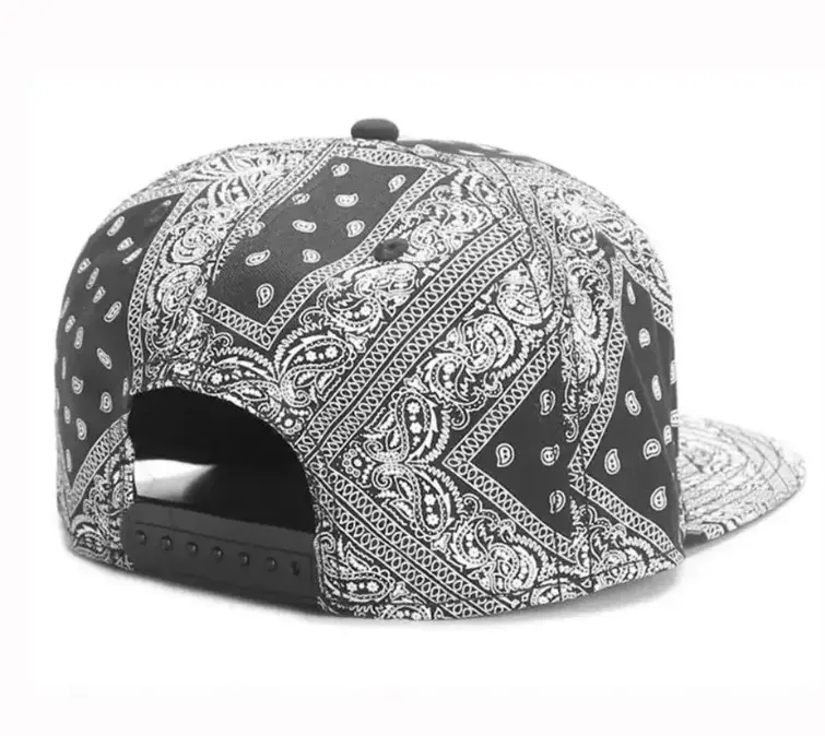 Paisley Snapback Hat Streetwear Bandana Style Flat Brim Cap Adjustable Unisex Hip Hop Urban Fashion Statement Baseball Cap