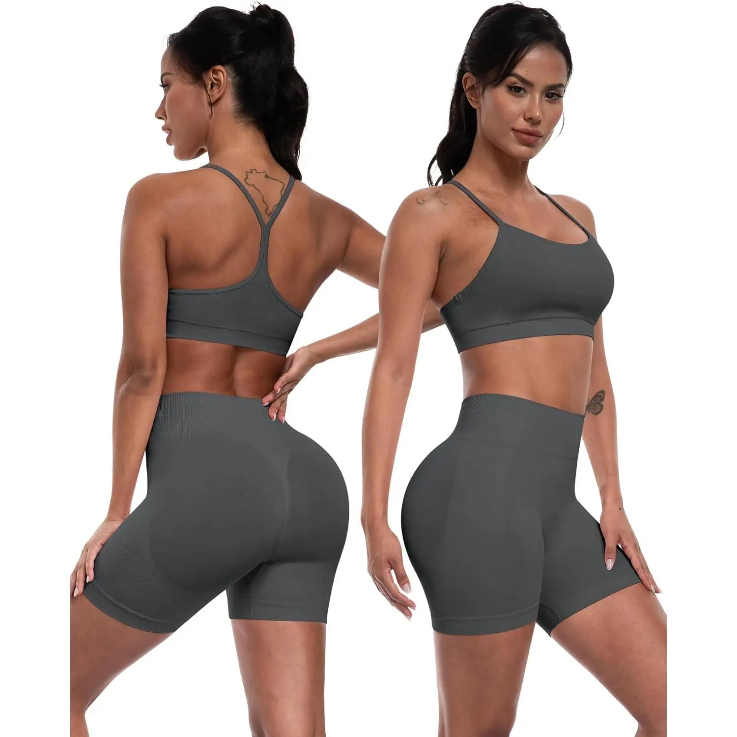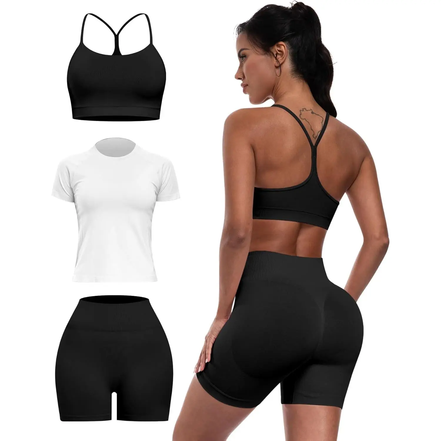 Women 3 Piece Workout Sets Seamless Running Tops Athletic Gym Yoga Short Y Back Sports Bras Outfits