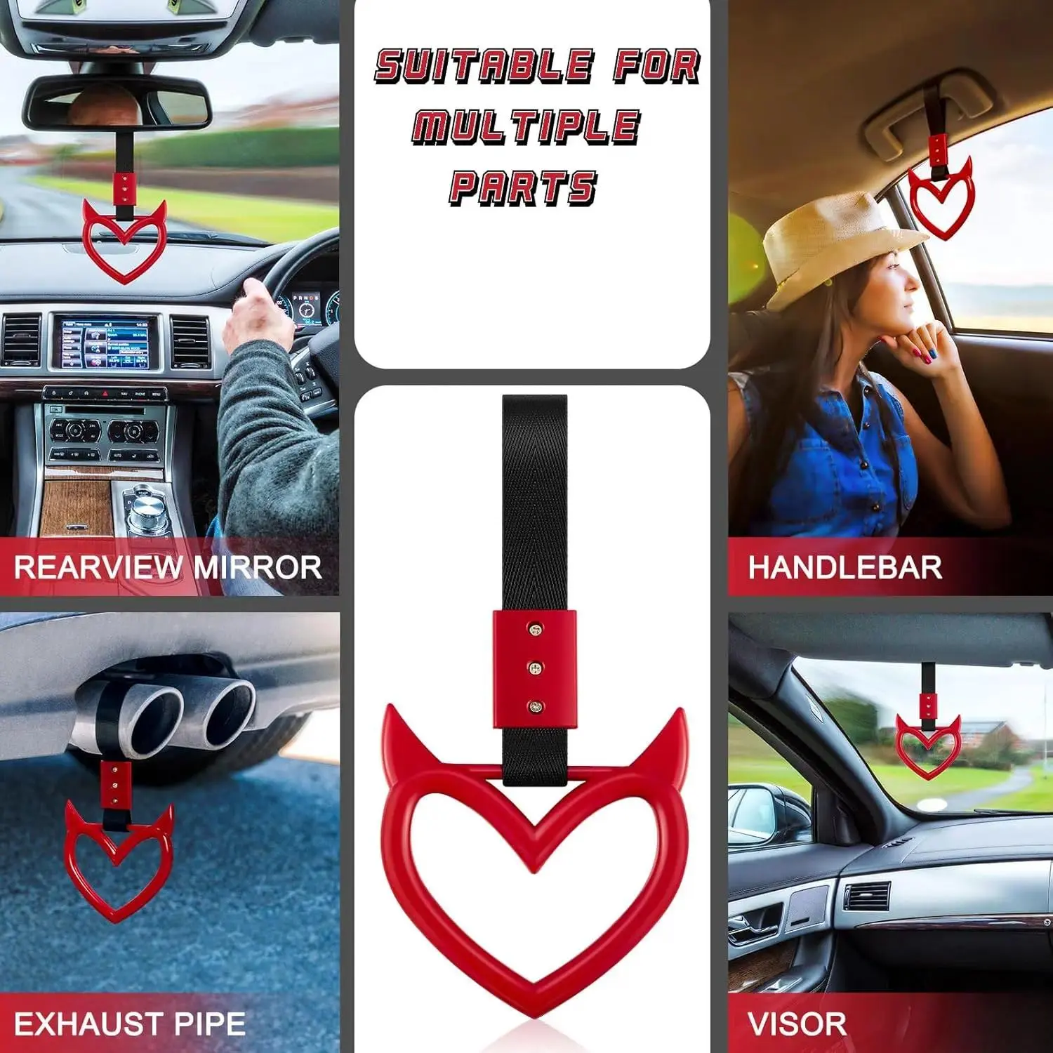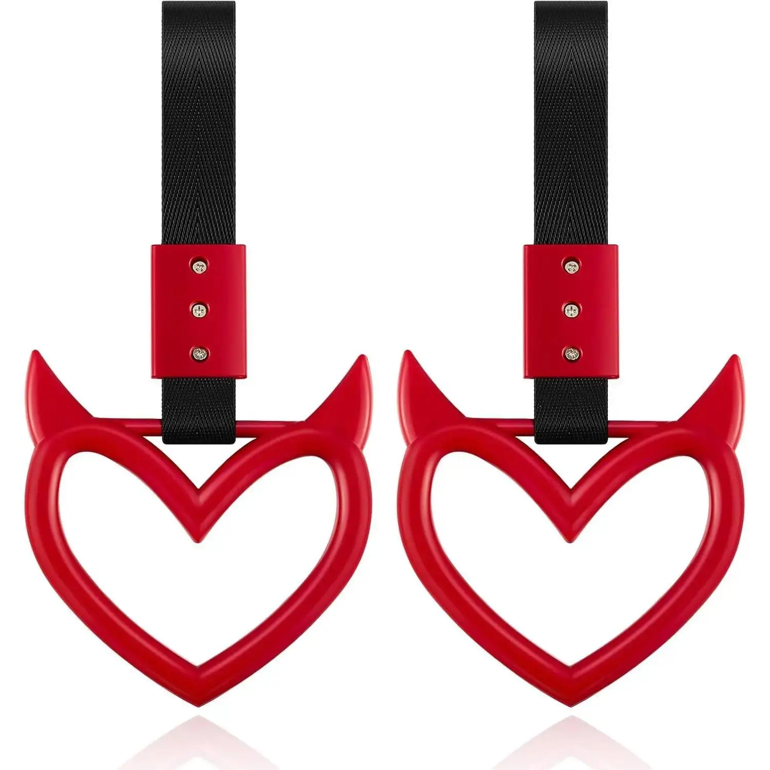 2 Pieces Heart Handle Keychains Car Accessory Heart Hand Strap Drift Charm for Car Interior Exterior Decoration(Red,Devil Style) jdm accessories heart ring