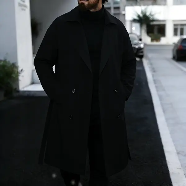 Men's Classic Trench Coat Double Breasted Belted Windbreaker, Trendy Mid Length Overcoat for Streetwear & Business Casual