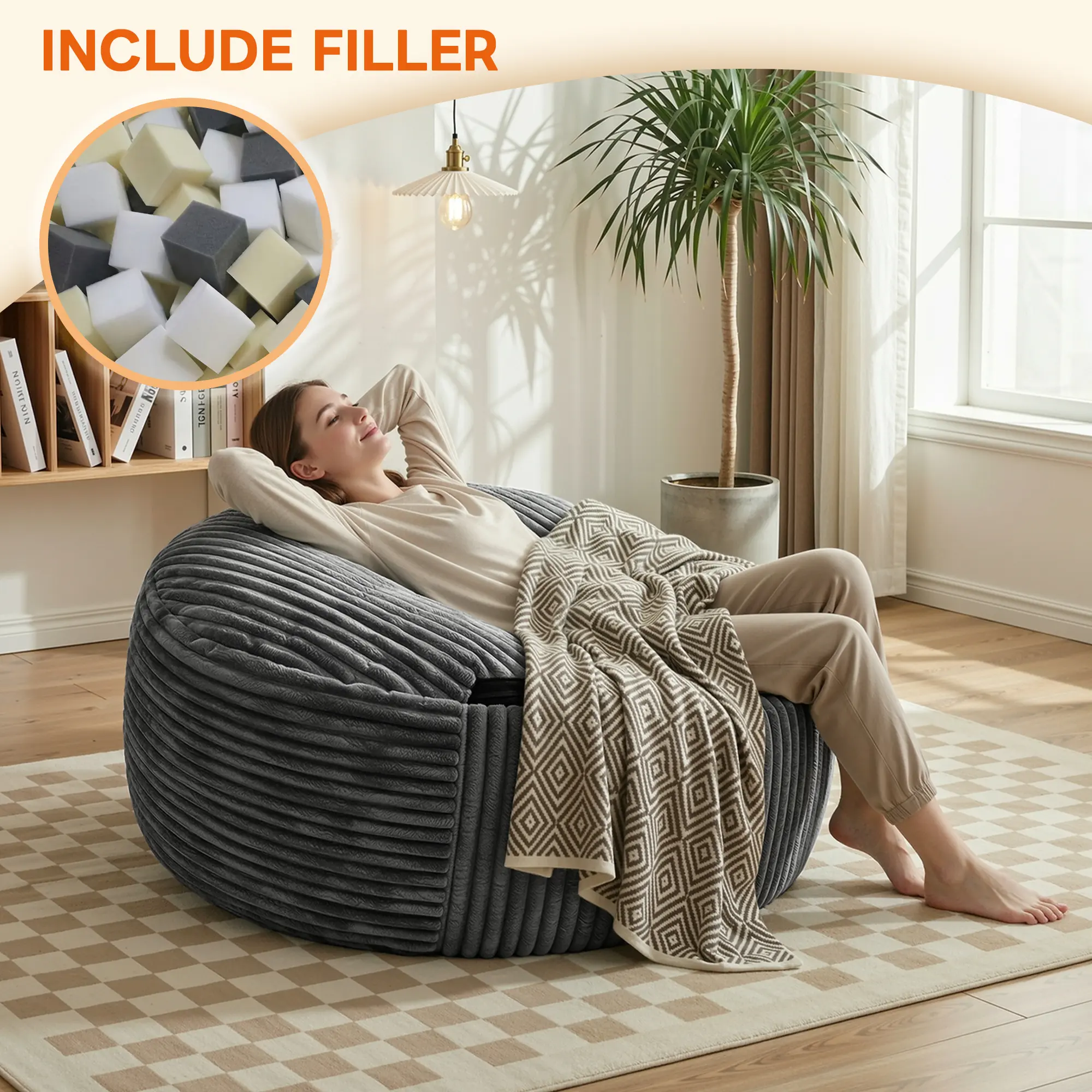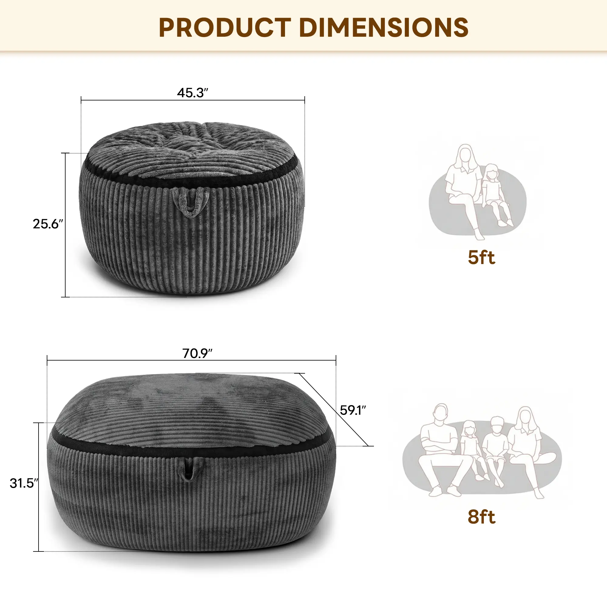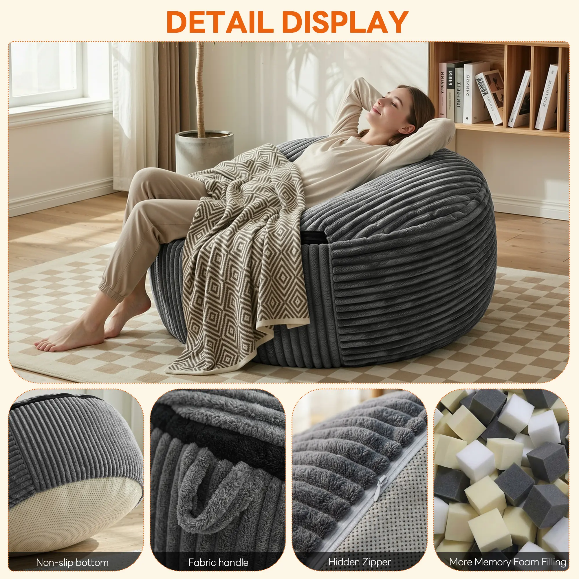 LIKIMIO 5/8FT Bean Bag Chairs with Machine Washable Removeable Flannel Cover & Memory Foam Filling, Large Giant Beanbag for Adults for Living Room, Bedroom (Grey)
