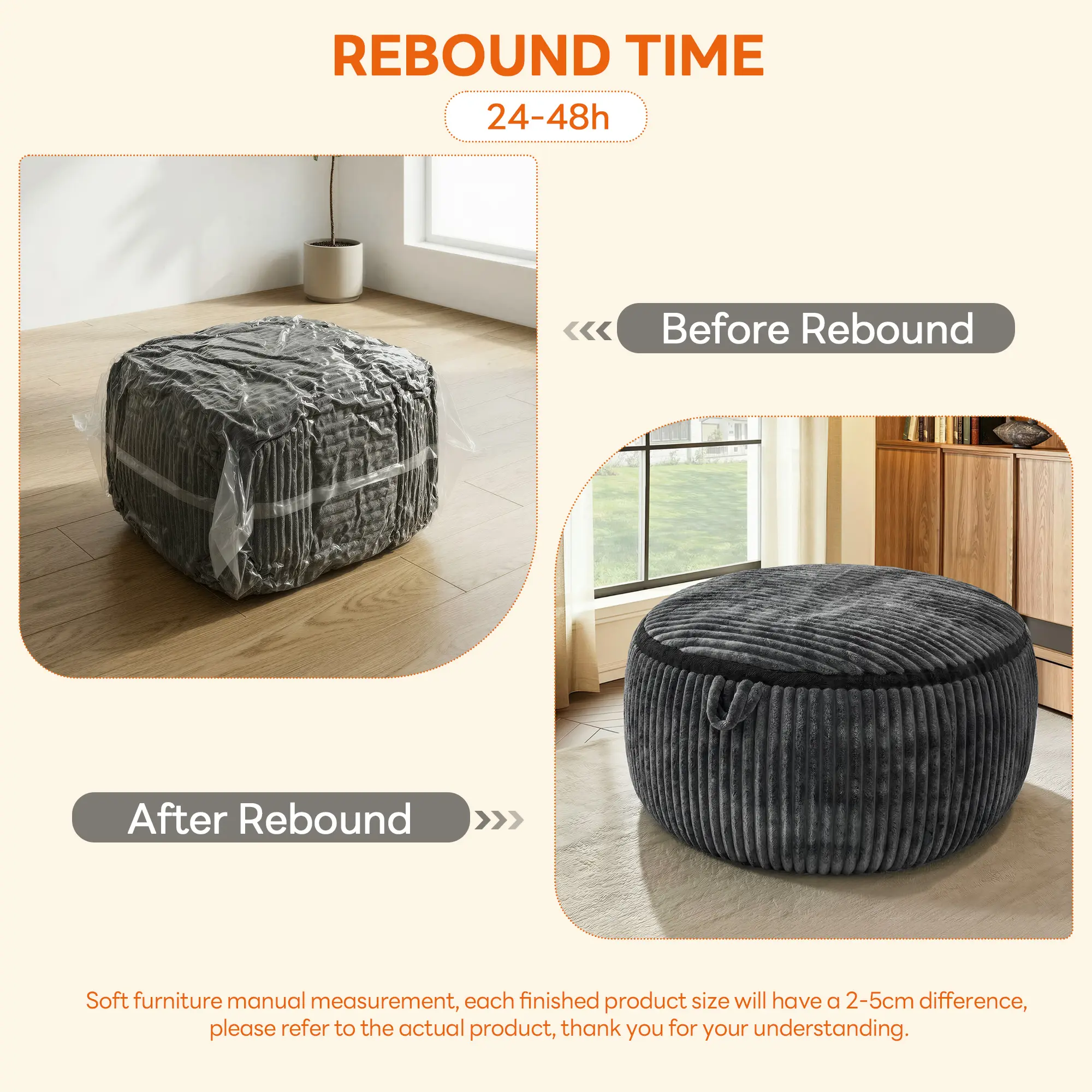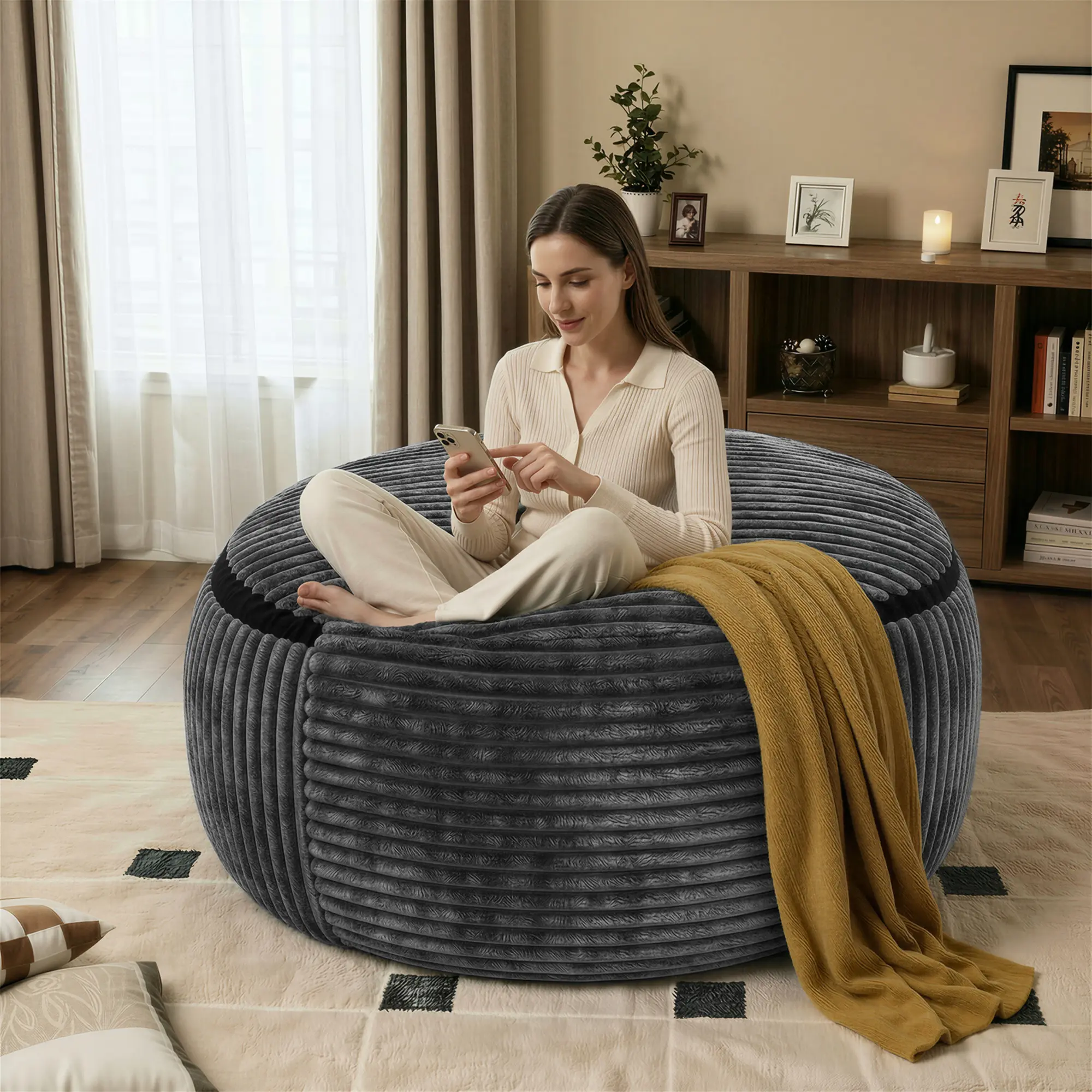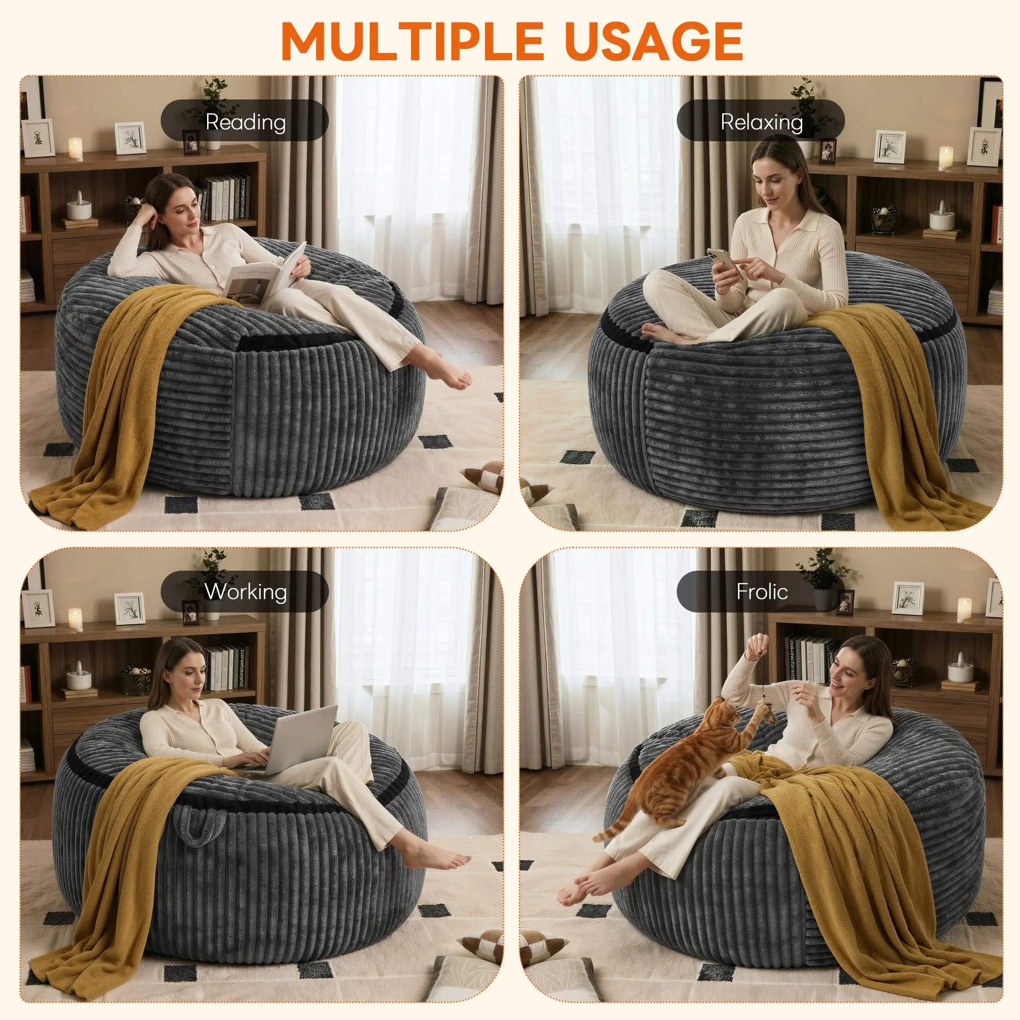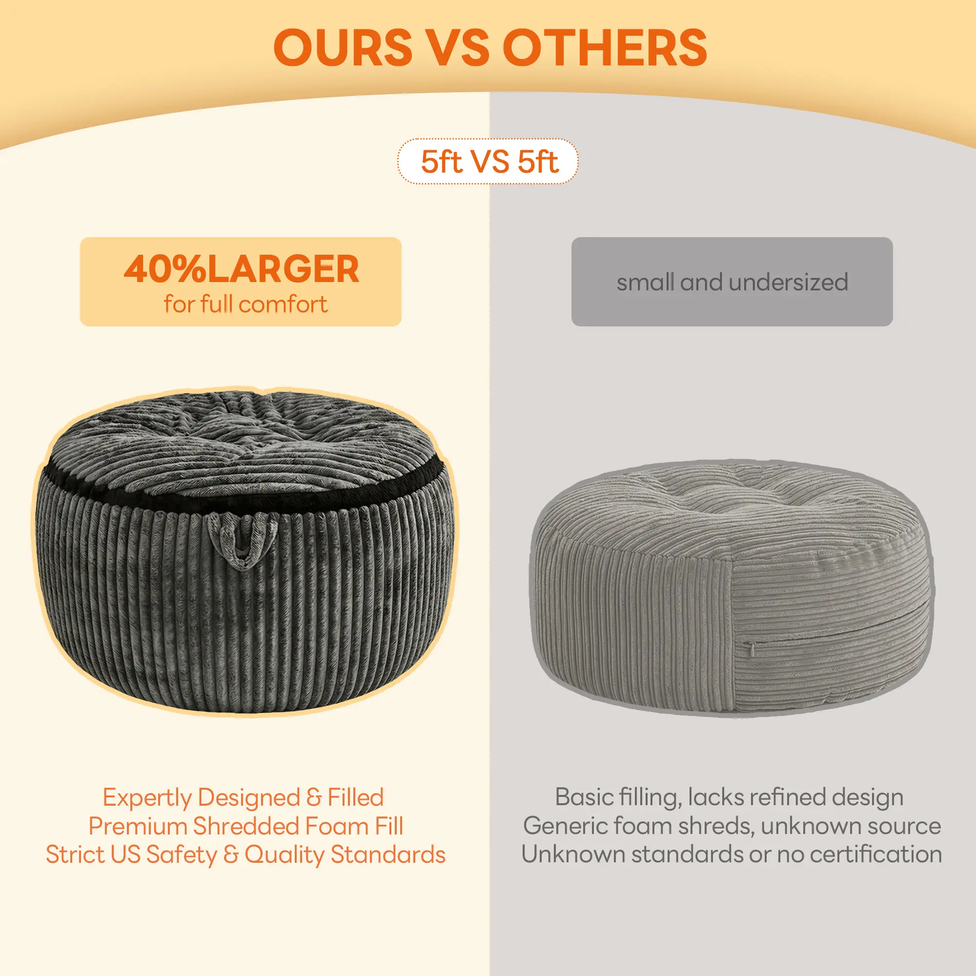 LIKIMIO 5/8FT Bean Bag Chairs with Machine Washable Removeable Flannel Cover & Memory Foam Filling, Large Giant Beanbag for Adults for Living Room, Bedroom (Grey)