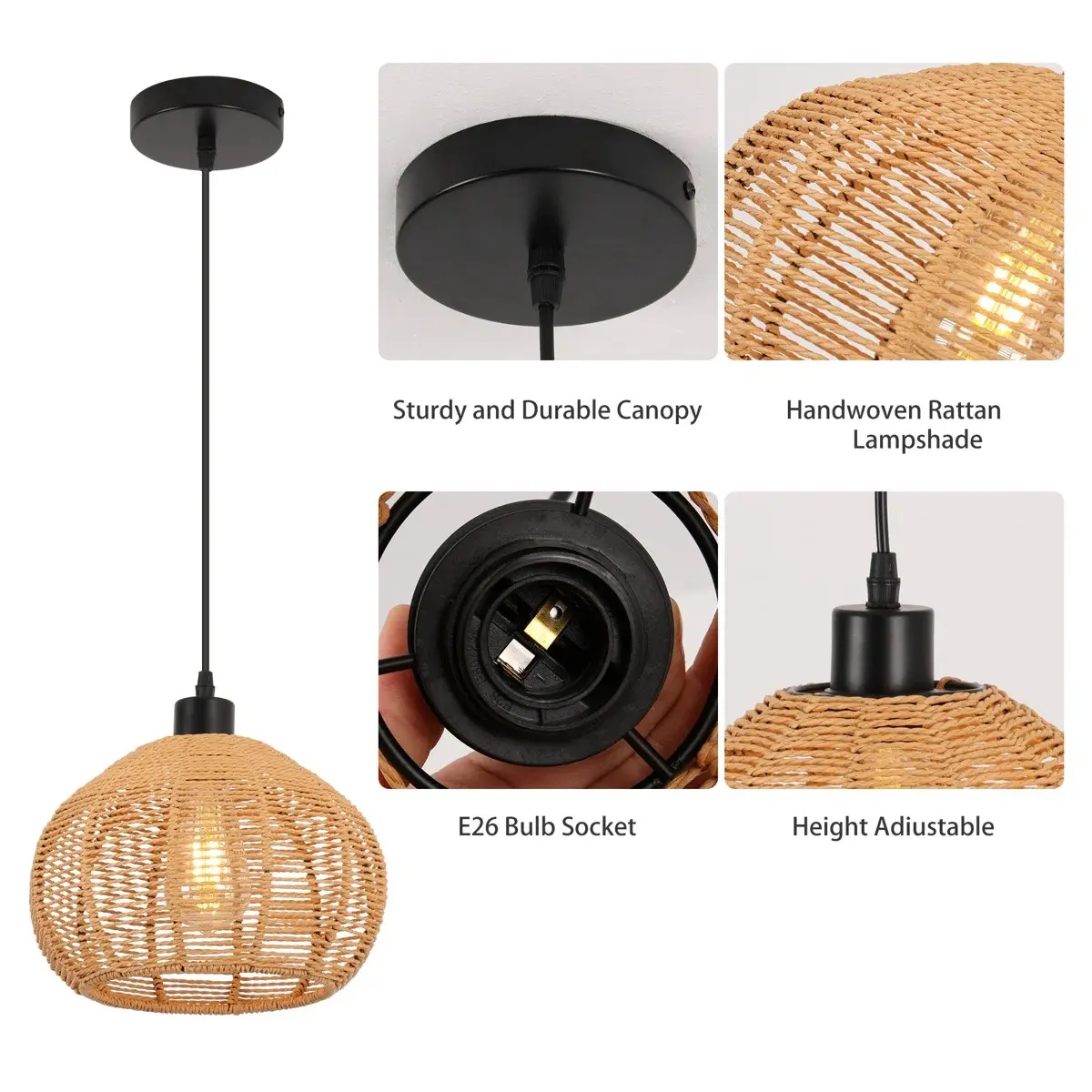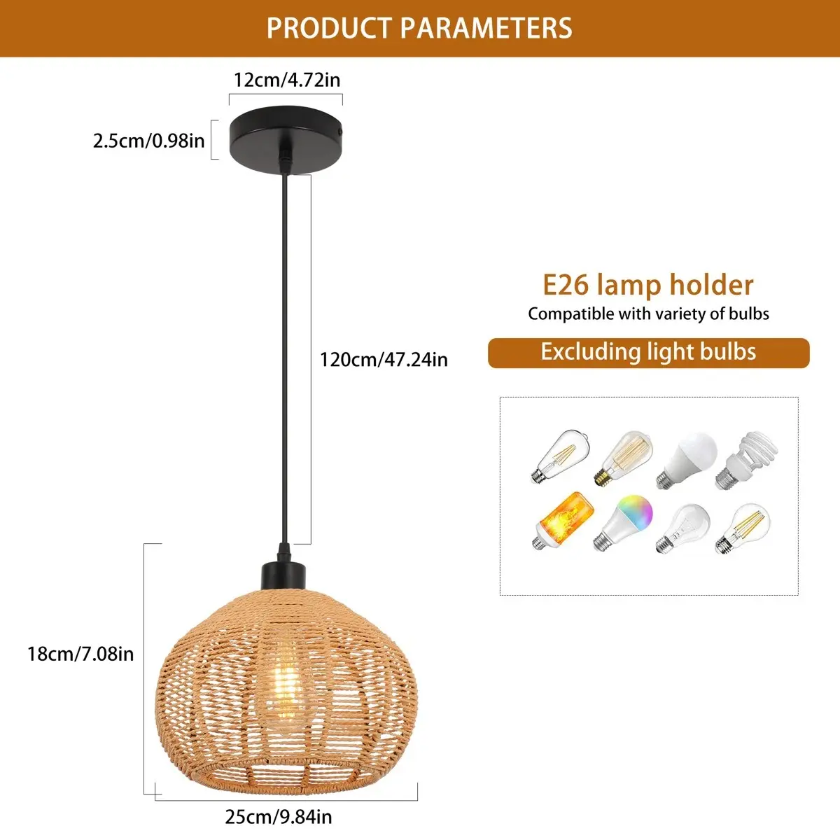 Compatible with E26 bases, this rattan pendant light fits LED, incandescent, filament, halogen, energy-saving, dimmable, and color-adjustable bulbs(bulbs not included), offering flexibility to meet your lighting preferences and needs.