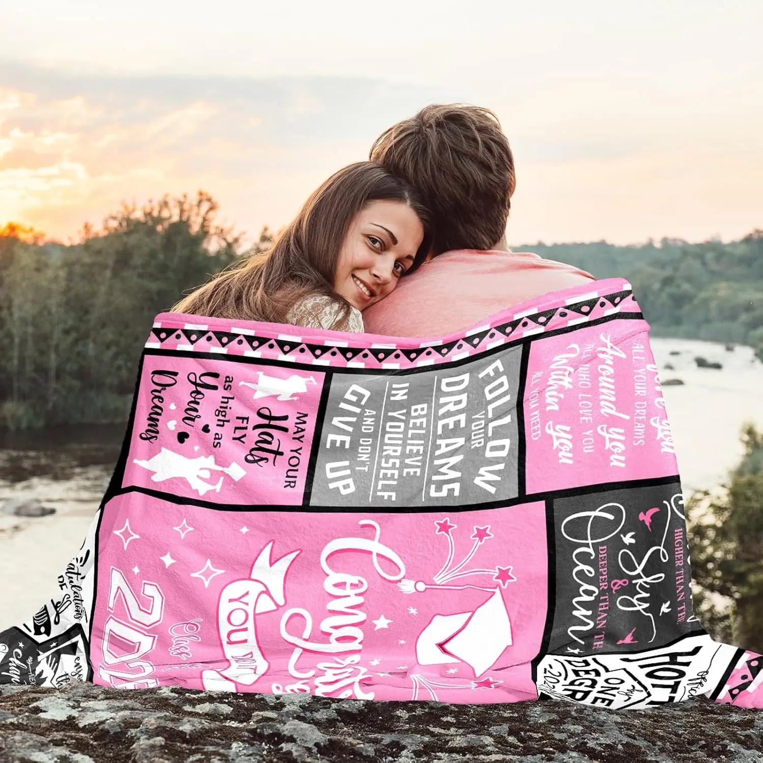 Graduation Gifts for Her Class of 2026, Pink Graduation Blanket for Girls Daughter Granddaughter, Inspirational College High School Grad Throw Blanket, Congratulations Gift