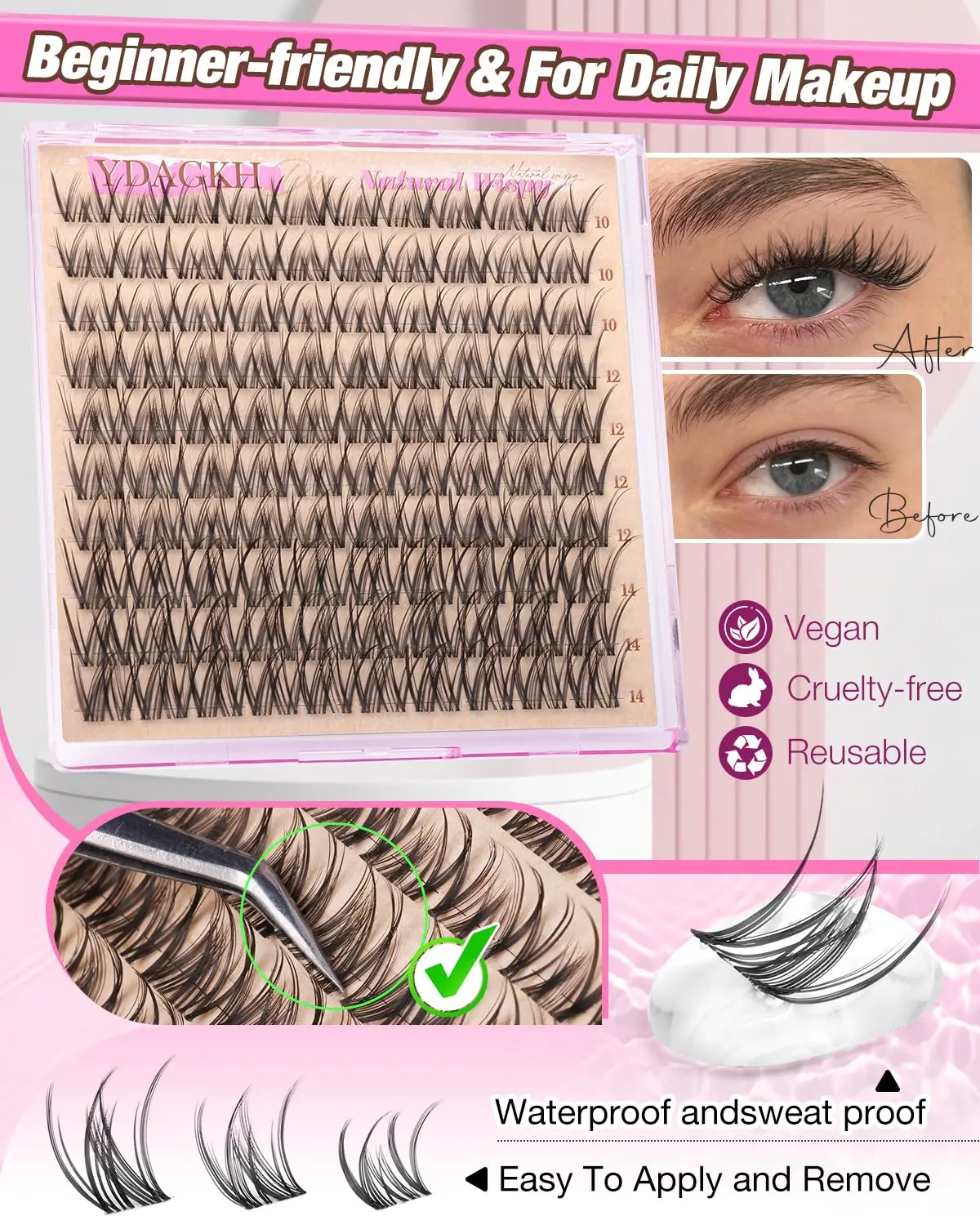 ·5.DIY-Friendly, Salon-Worthy Look in Minutes: Individual cluster design for easy, precise placement—no pro skills or fancy tools required. Beginners can nail a polished, salon-like finish in 5 minutes. Lightweight, skin-friendly, and gentle for sensitive eyes, perfect for daily wear, dates, or casual hangouts.